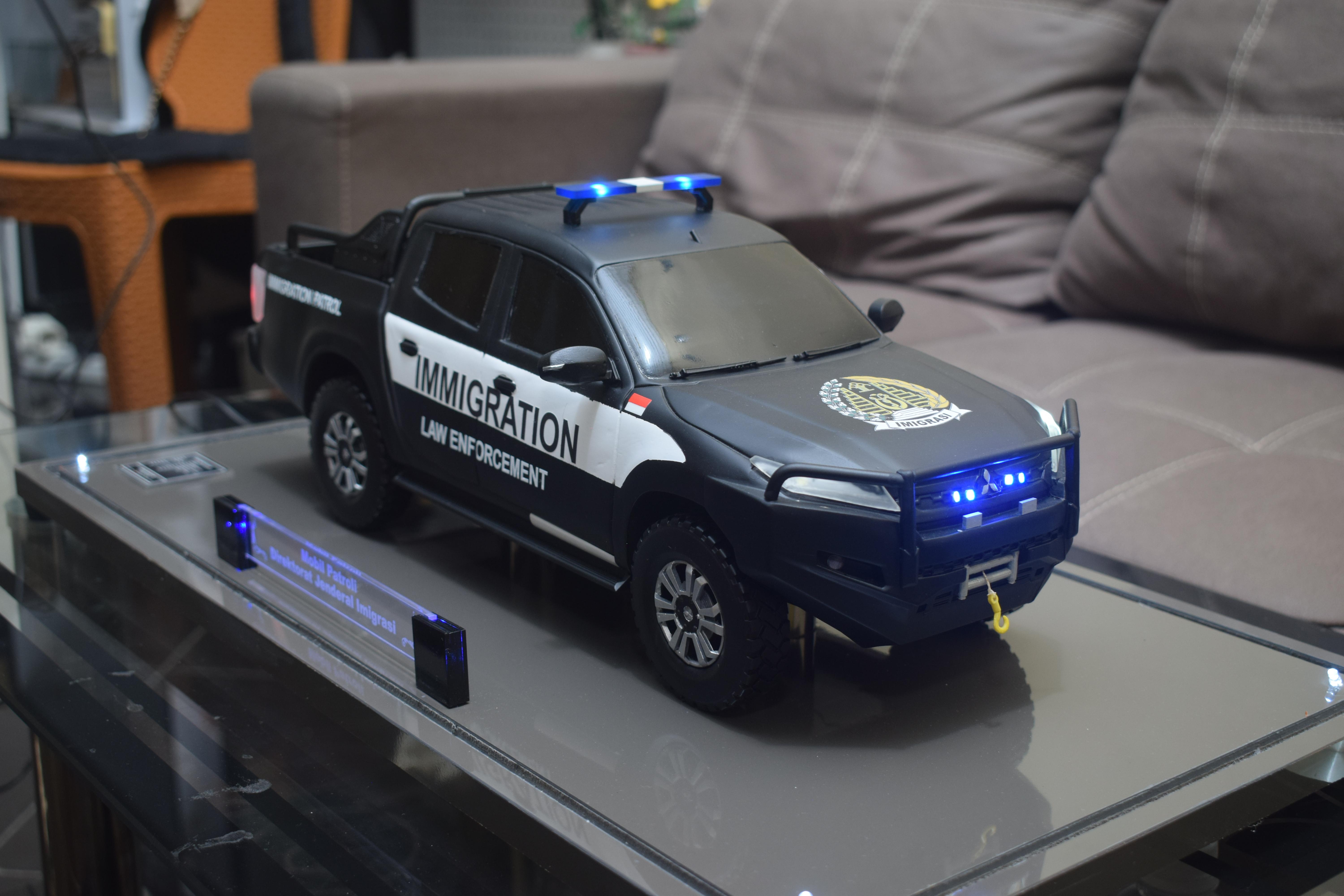 1. Miniatur Mobil Immigration ini berbahan dasar fiber, acrylic, resin, artificial part, kayu sebagai tatakan serta dilengkapi pencahayaan dengan lampu led (optional), kemudian kami bingkai dengan etalase kaca (optional).