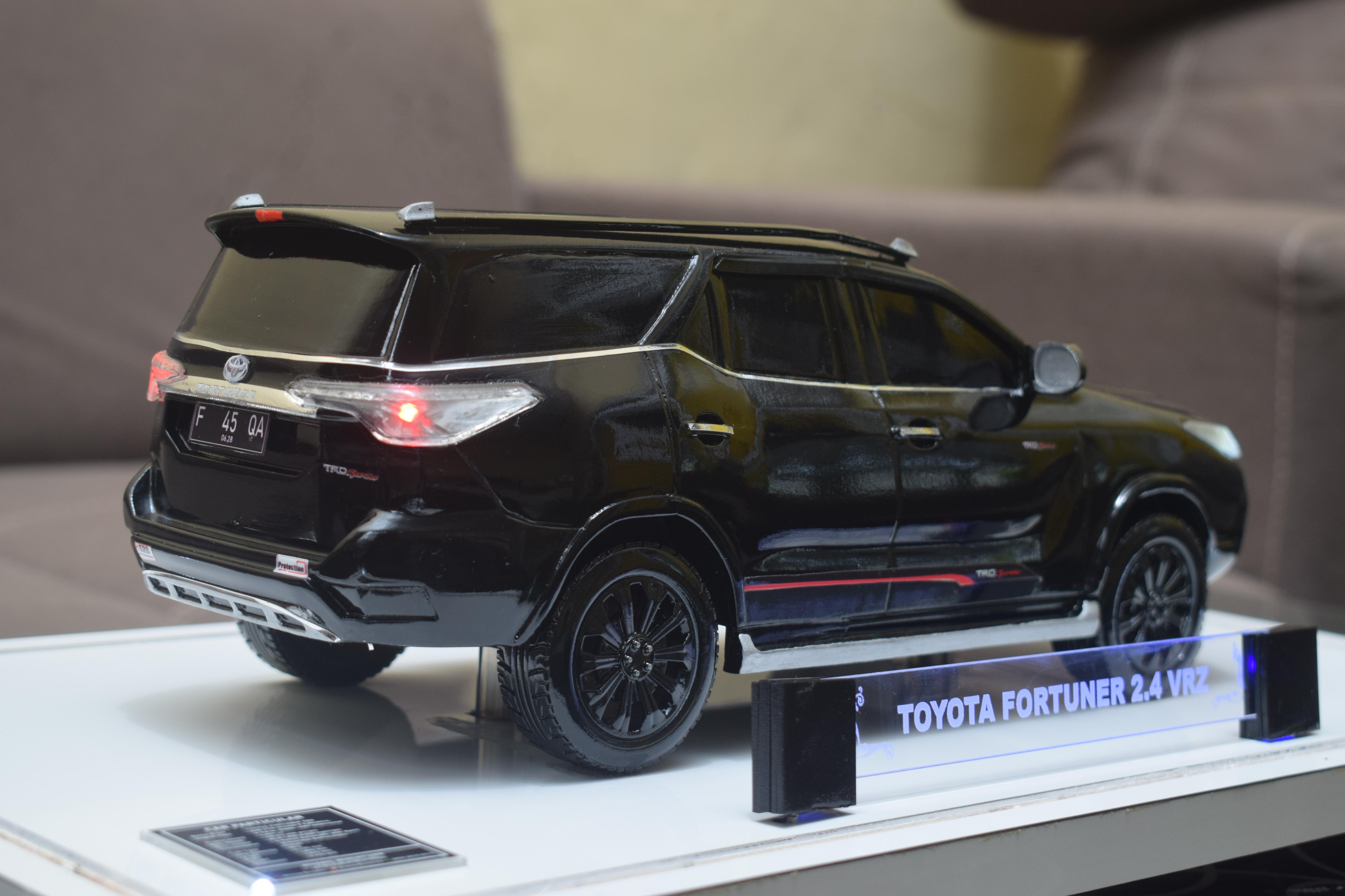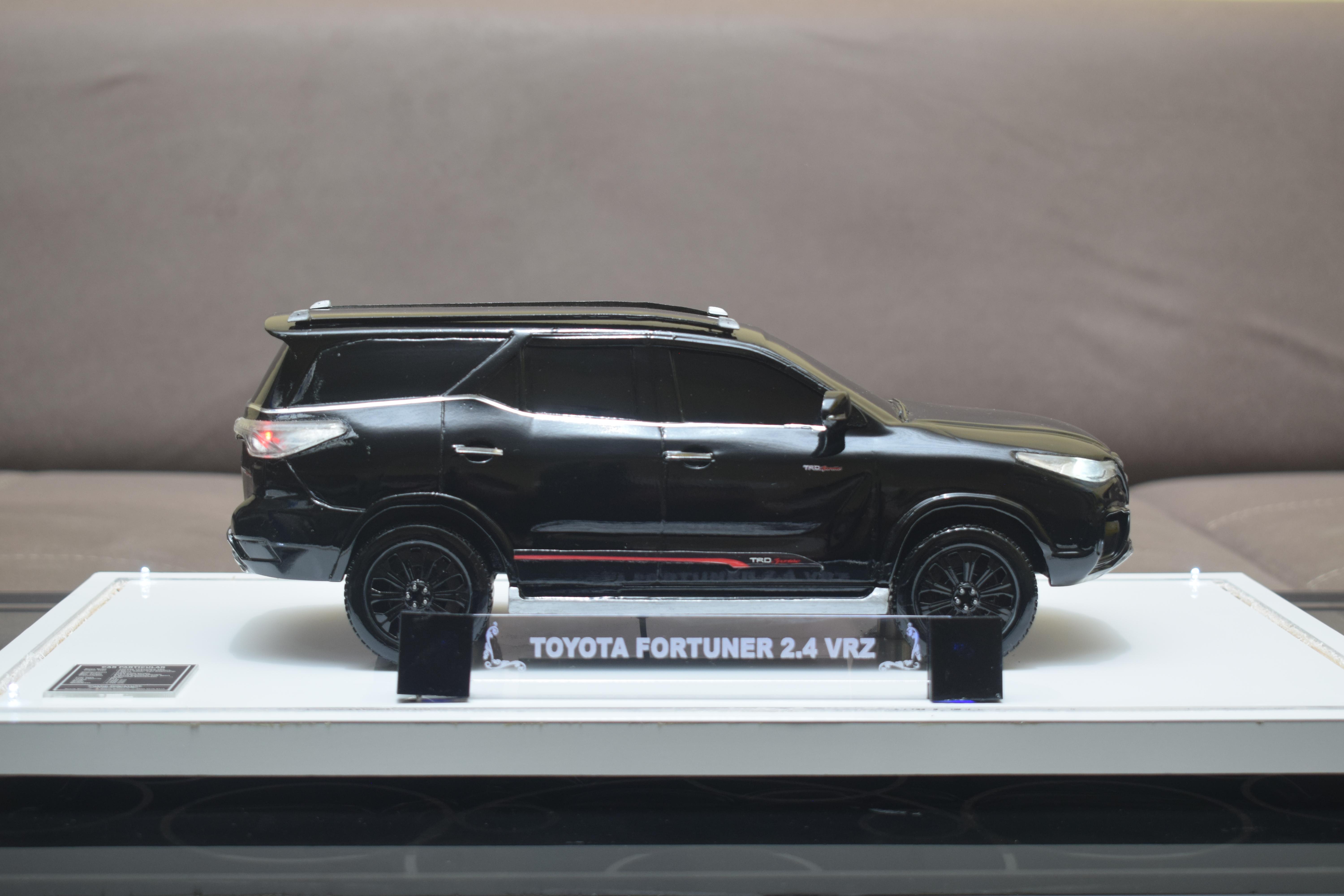 1. Miniatur Mobil Fortuner ini berbahan dasar fiber, acrylic, resin, artificial part, kayu sebagai tatakan serta dilengkapi pencahayaan dengan lampu led (optional), kemudian kami bingkai dengan etalase kaca (optional).