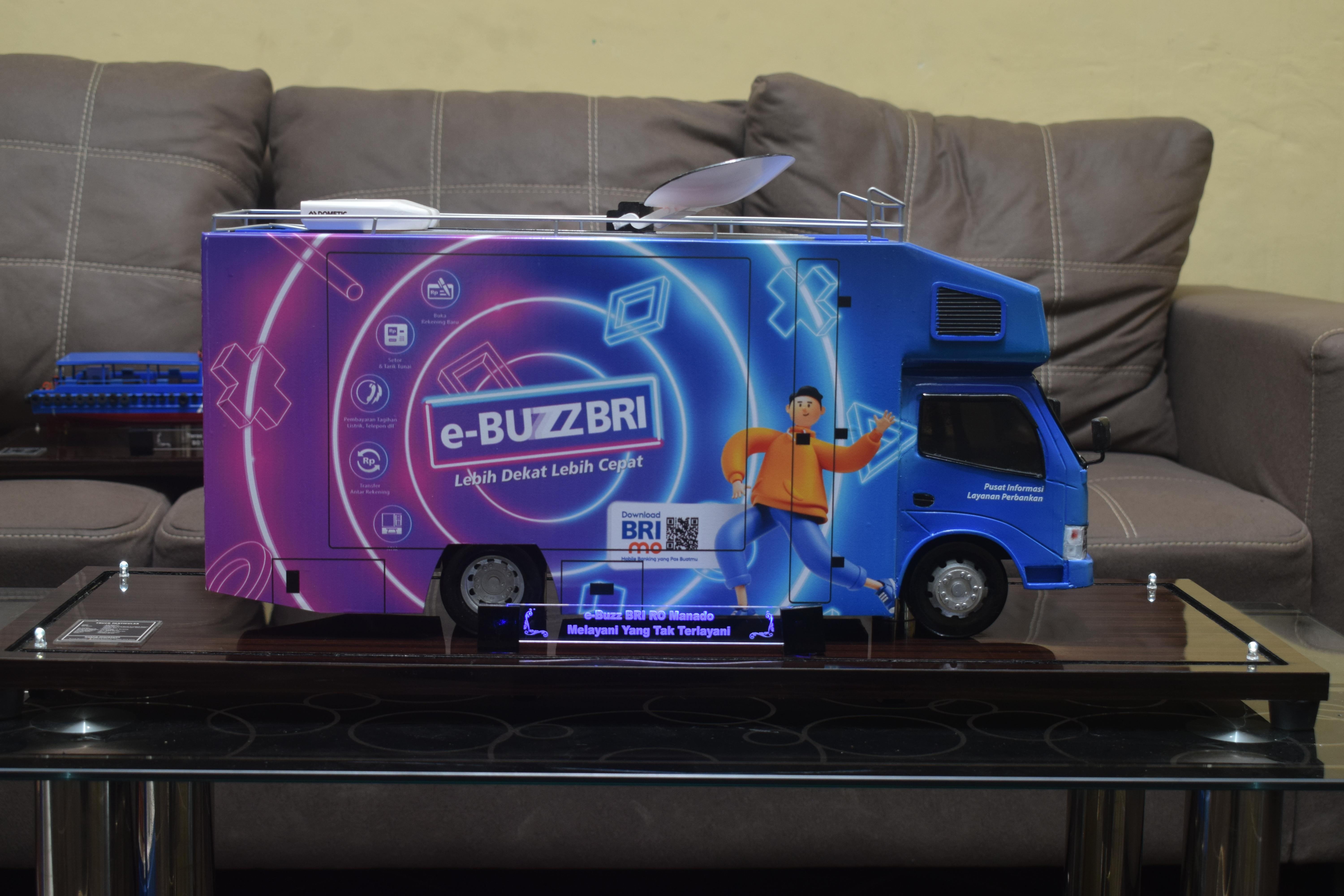 1. Miniatur Mobil E Buzz BRI ini berbahan dasar fiber, acrylic, resin, artificial part, kayu sebagai tatakan serta dilengkapi pencahayaan dengan lampu led (optional), kemudian kami bingkai dengan etalase kaca (optional).