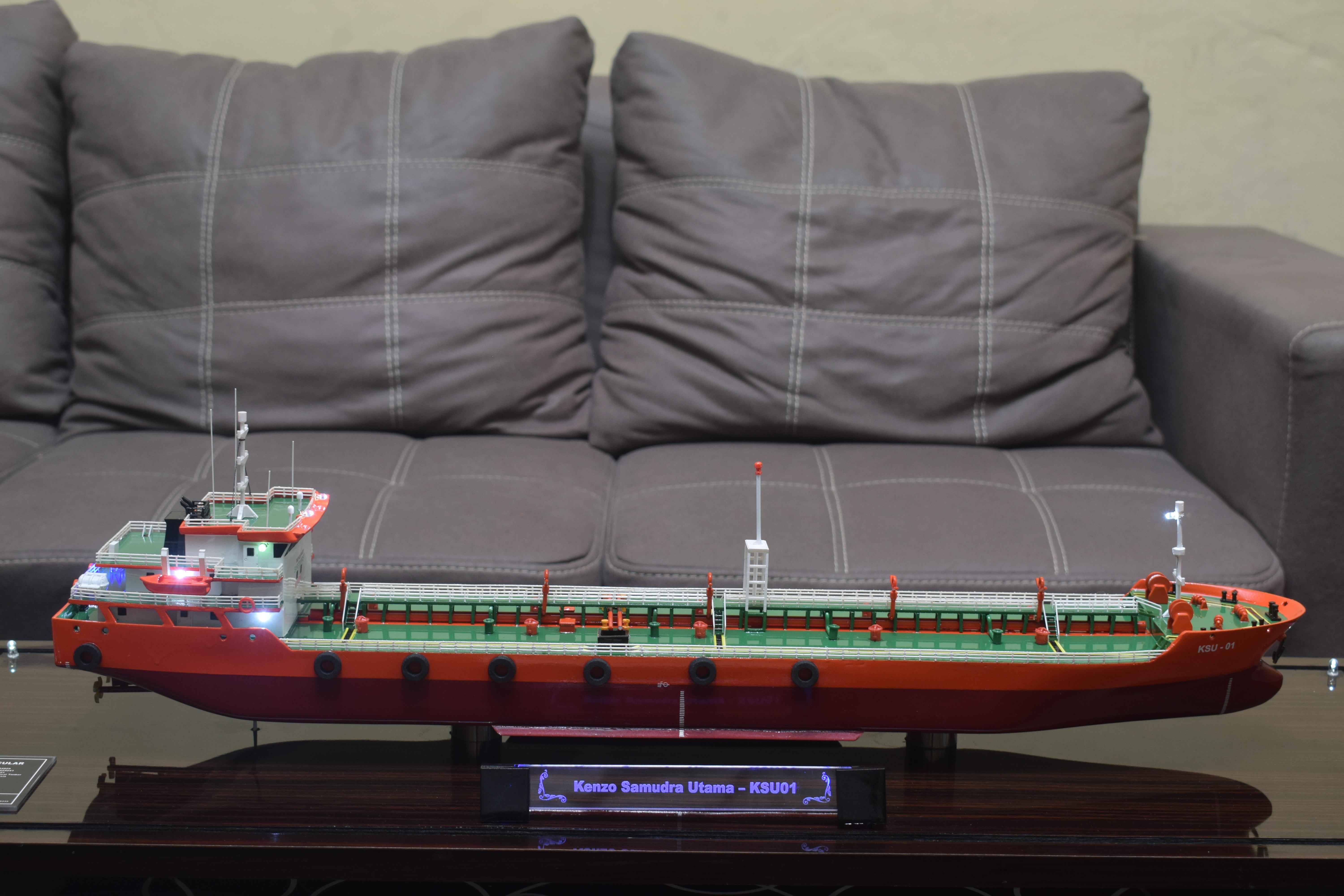 1. Miniatur Kapal SPOB KSU ini berbahan dasar fiber, acrylic, resin, artificial part, kayu sebagai tatakan serta dilengkapi pencahayaan dengan lampu led (optional), kemudian kami bingkai dengan etalase kaca (optional).