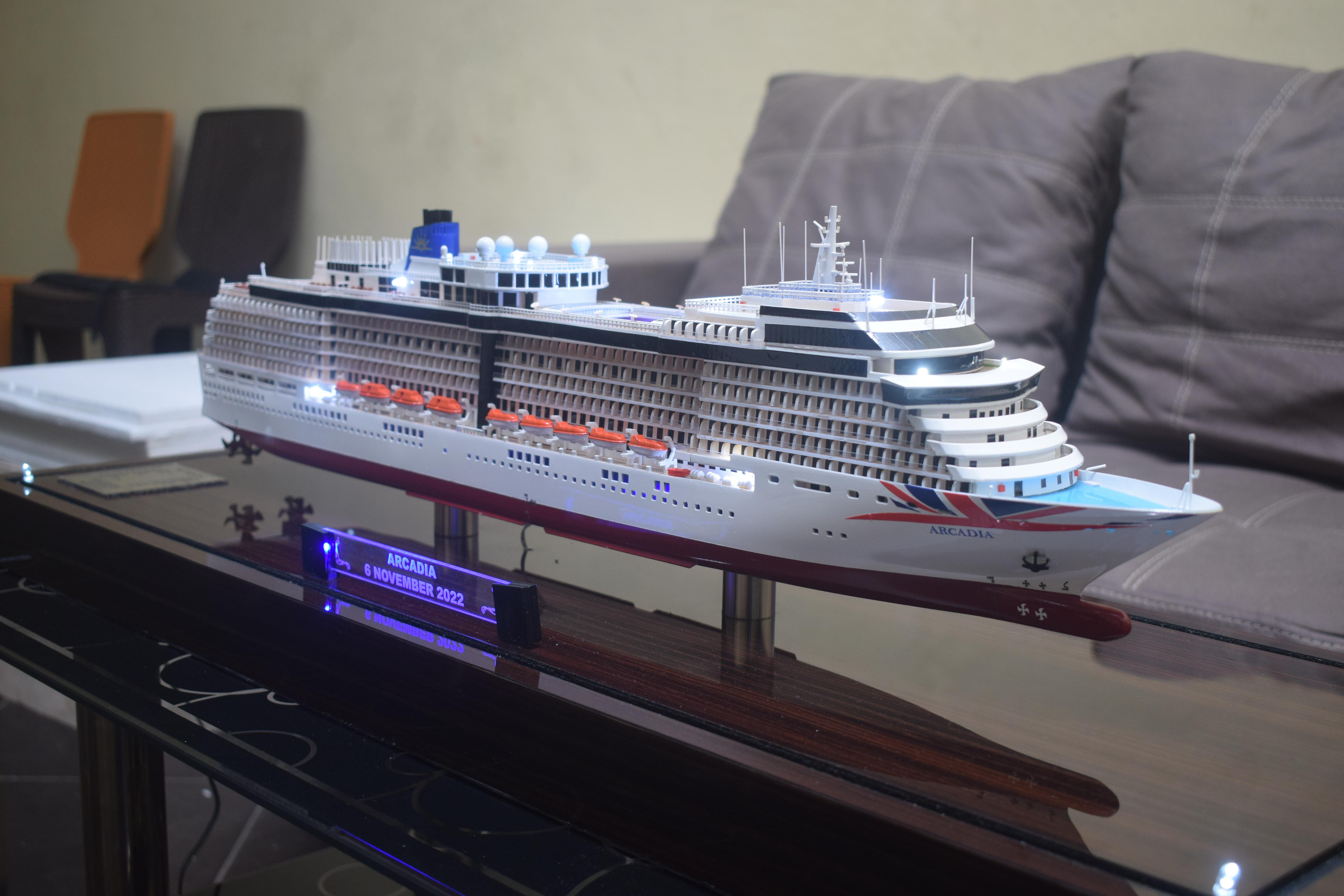 1. Miniatur Kapal Arcadia ini berbahan dasar fiber, acrylic, resin, artificial part, kayu sebagai tatakan serta dilengkapi pencahayaan dengan lampu led (optional), kemudian kami bingkai dengan etalase kaca (optional).
