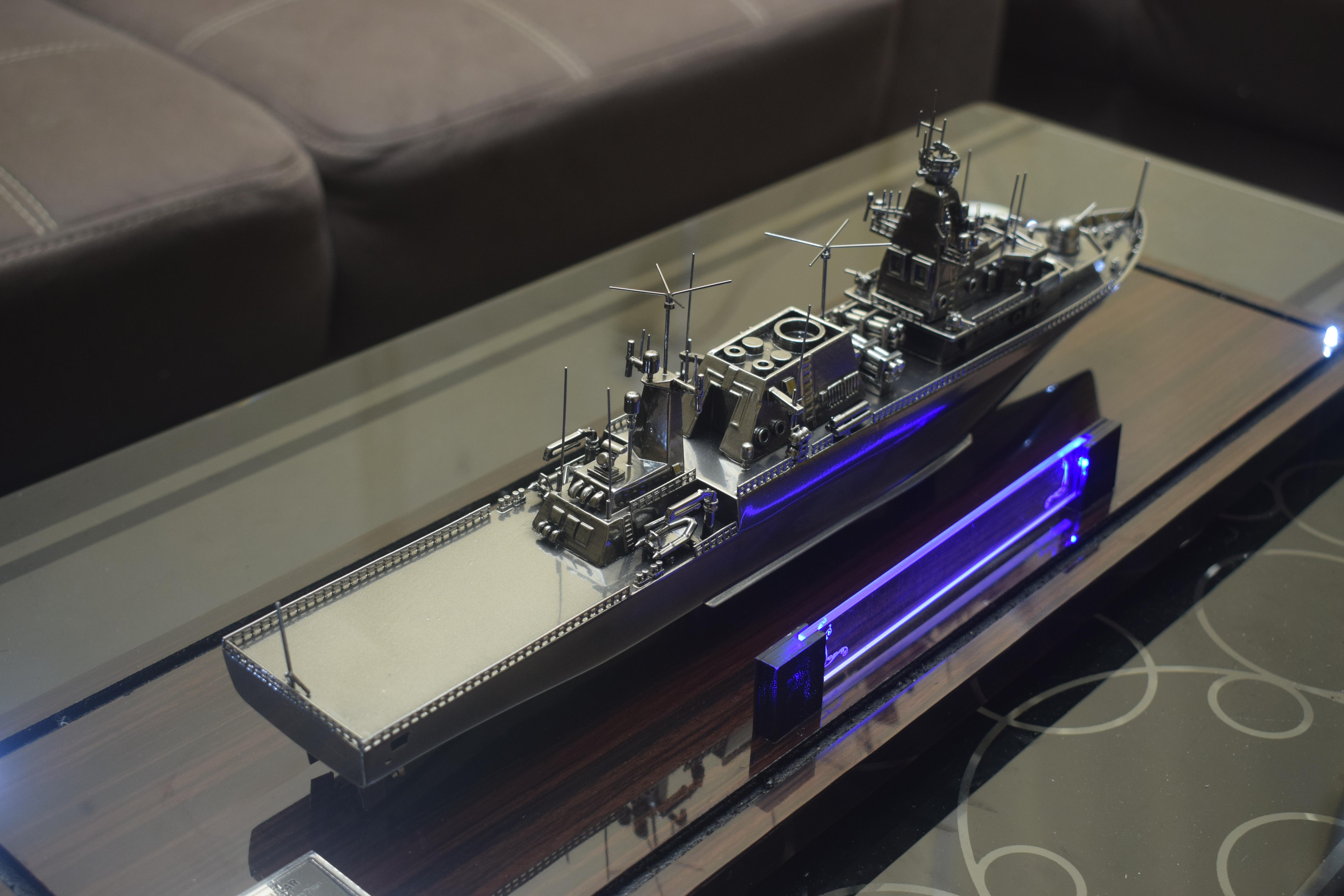 1. Miniatur Kapal KRI Bung Tomo (Chrome) ini berbahan dasar fiber, acrylic, resin, artificial part, kayu sebagai tatakan serta dilengkapi pencahayaan dengan lampu led (optional), kemudian kami bingkai dengan etalase kaca (optional).