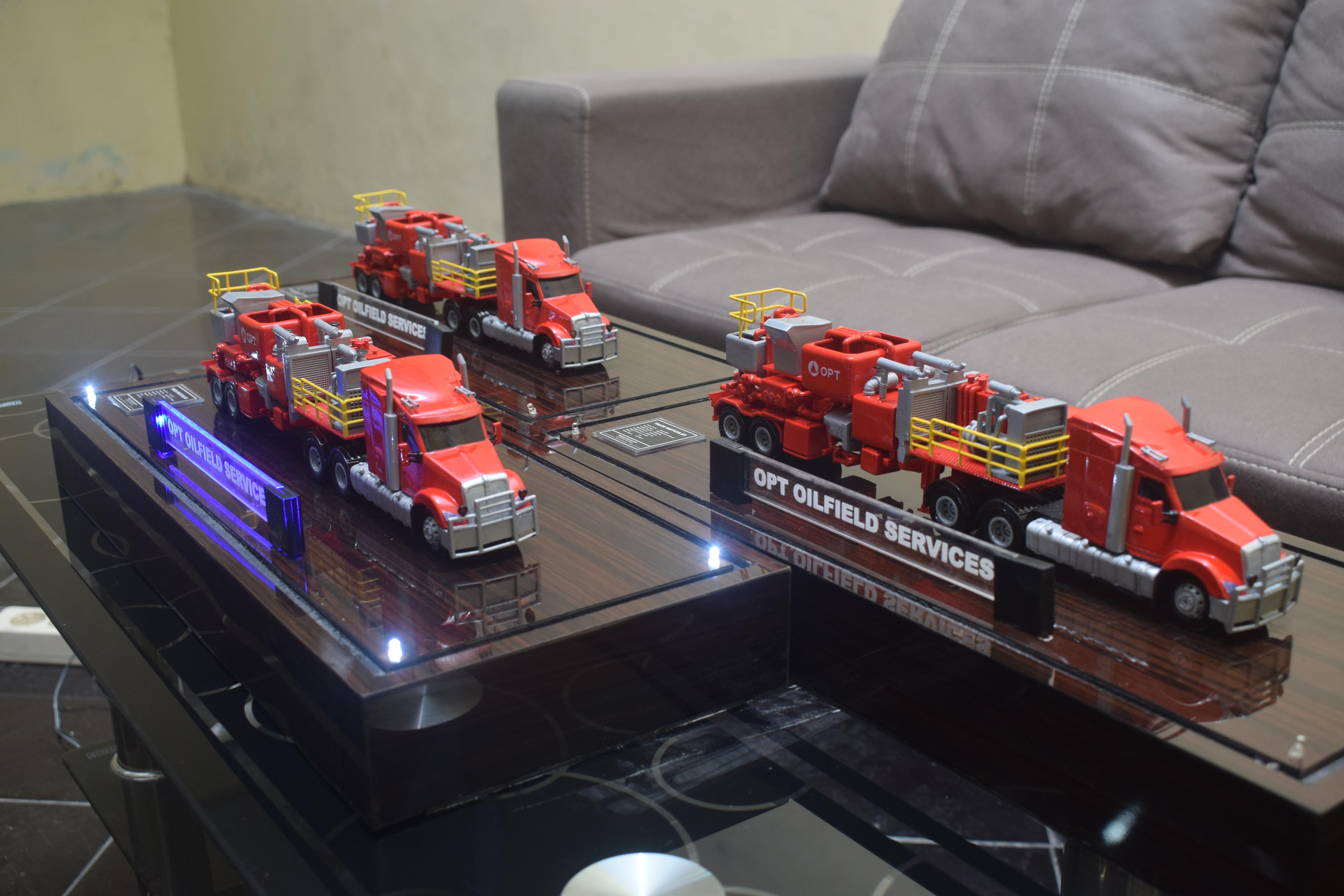 1. Miniatur Truk OPT ini berbahan dasar fiber, acrylic, resin, artificial part, kayu sebagai tatakan serta dilengkapi pencahayaan dengan lampu led ( optional ), kemudian kami bingkai dengan etalase kaca ( optional ).
