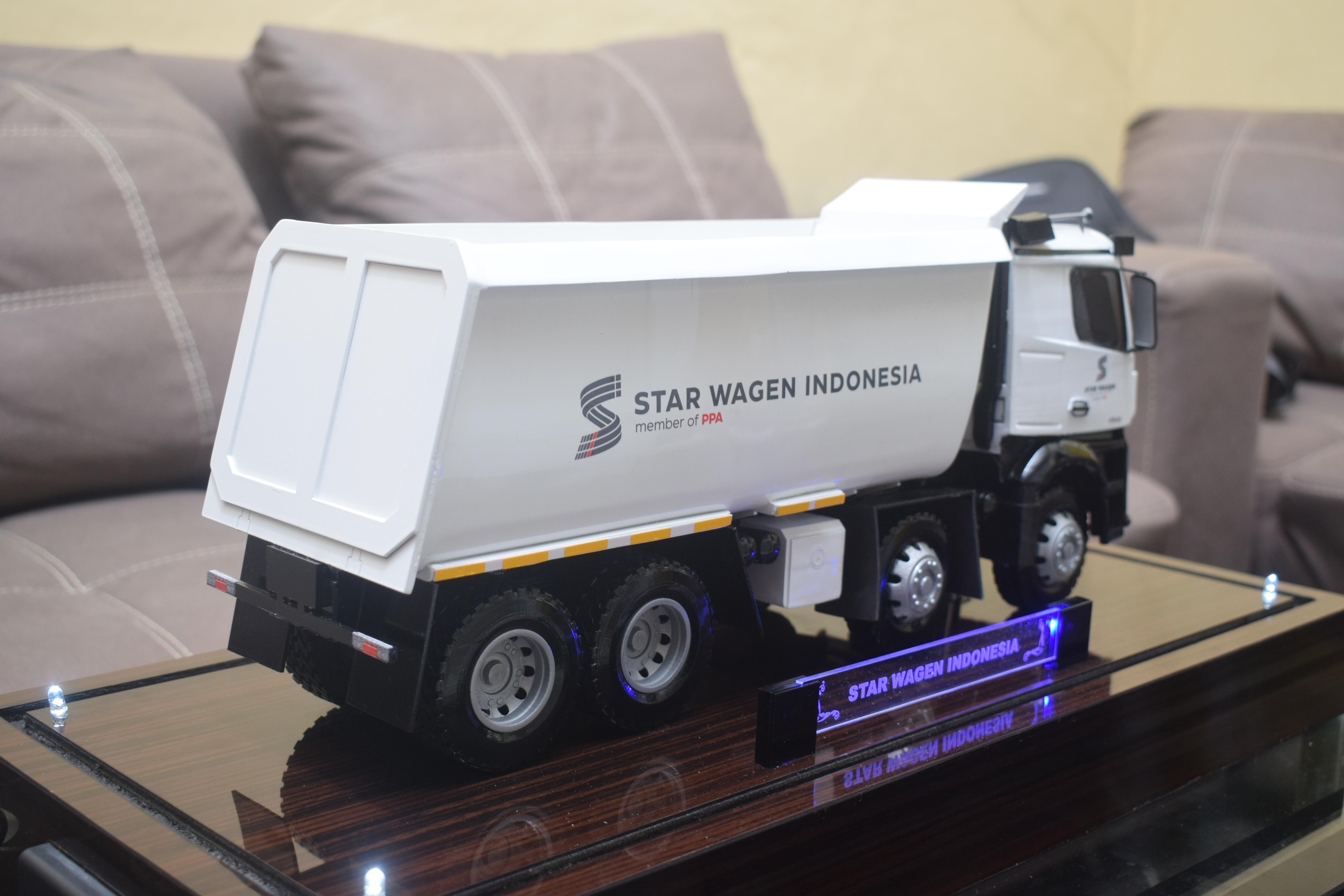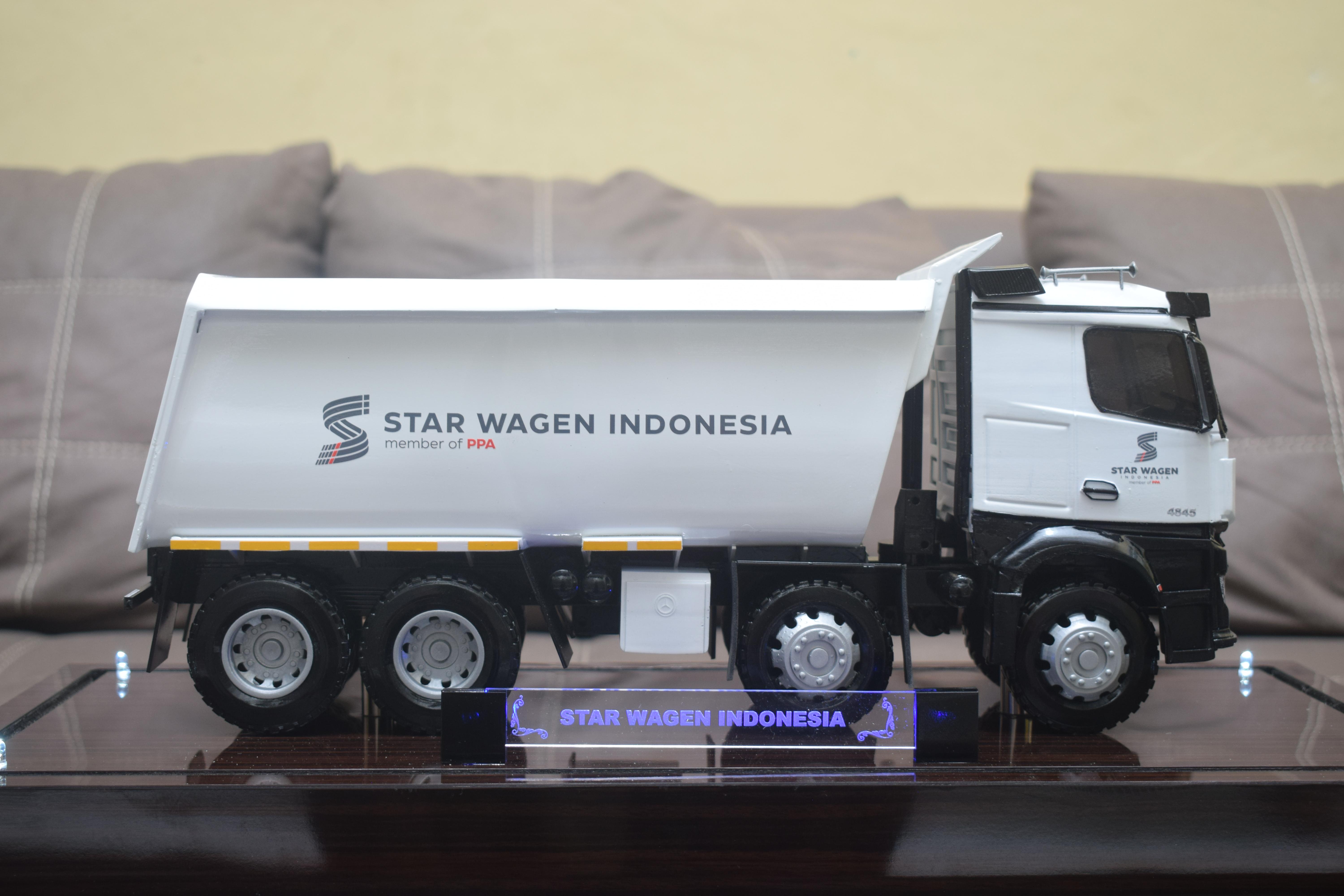 1. Miniatur Dumptruck Star Wagen ini berbahan dasar fiber, acrylic, resin, artificial part, kayu sebagai tatakan serta dilengkapi pencahayaan dengan lampu led (optional), kemudian kami bingkai dengan etalase kaca (optional).
