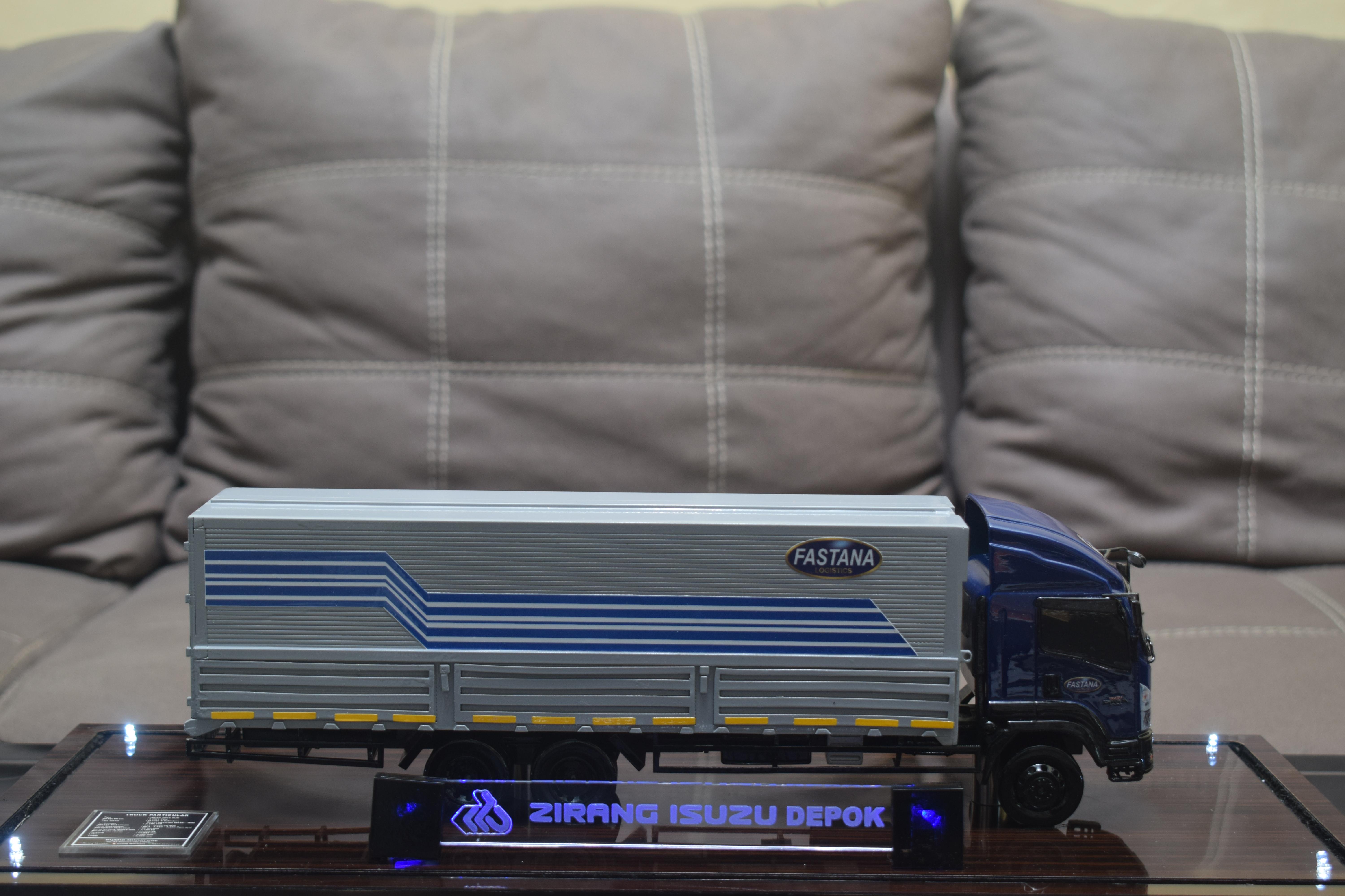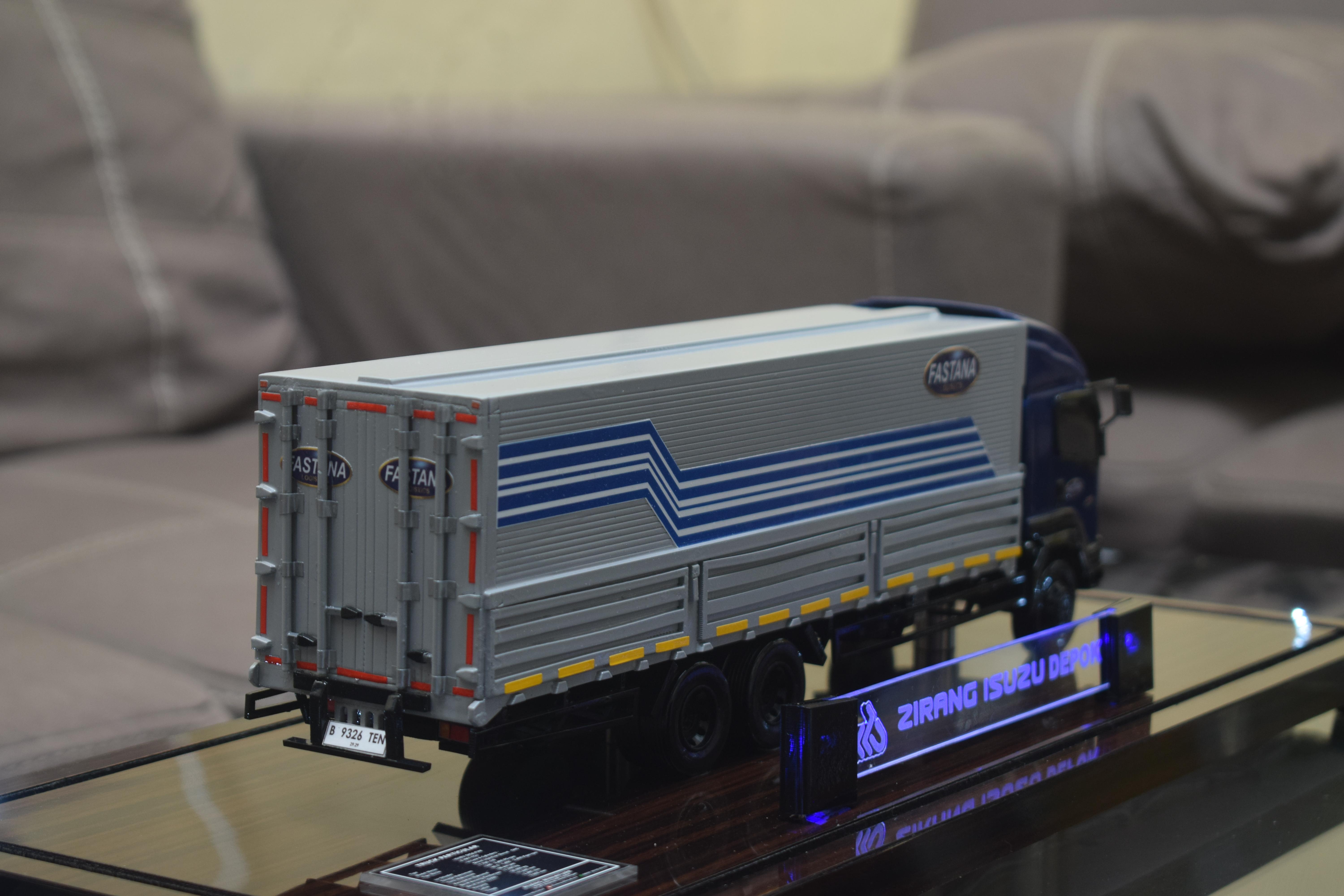 1. Miniatur Truk Kontainer Fastana ini berbahan dasar fiber, acrylic, resin, artificial part, kayu sebagai tatakan serta dilengkapi pencahayaan dengan lampu led (optional), kemudian kami bingkai dengan etalase kaca (optional).