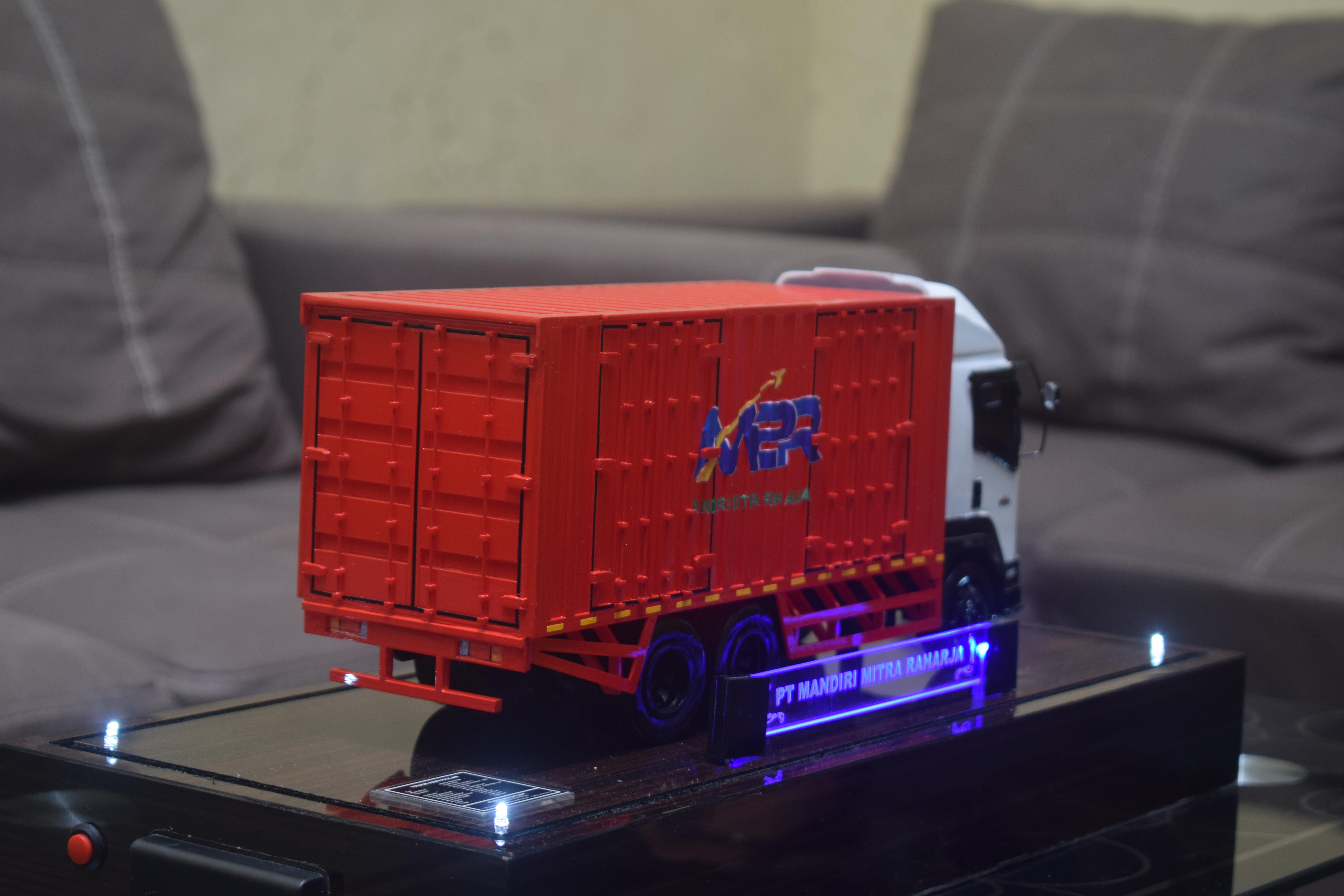 1. Miniatur Truk Kontainer PT MMR ini berbahan dasar fiber, acrylic, resin, artificial part, kayu sebagai tatakan serta dilengkapi pencahayaan dengan lampu led (optional), kemudian kami bingkai dengan etalase kaca (optional).
