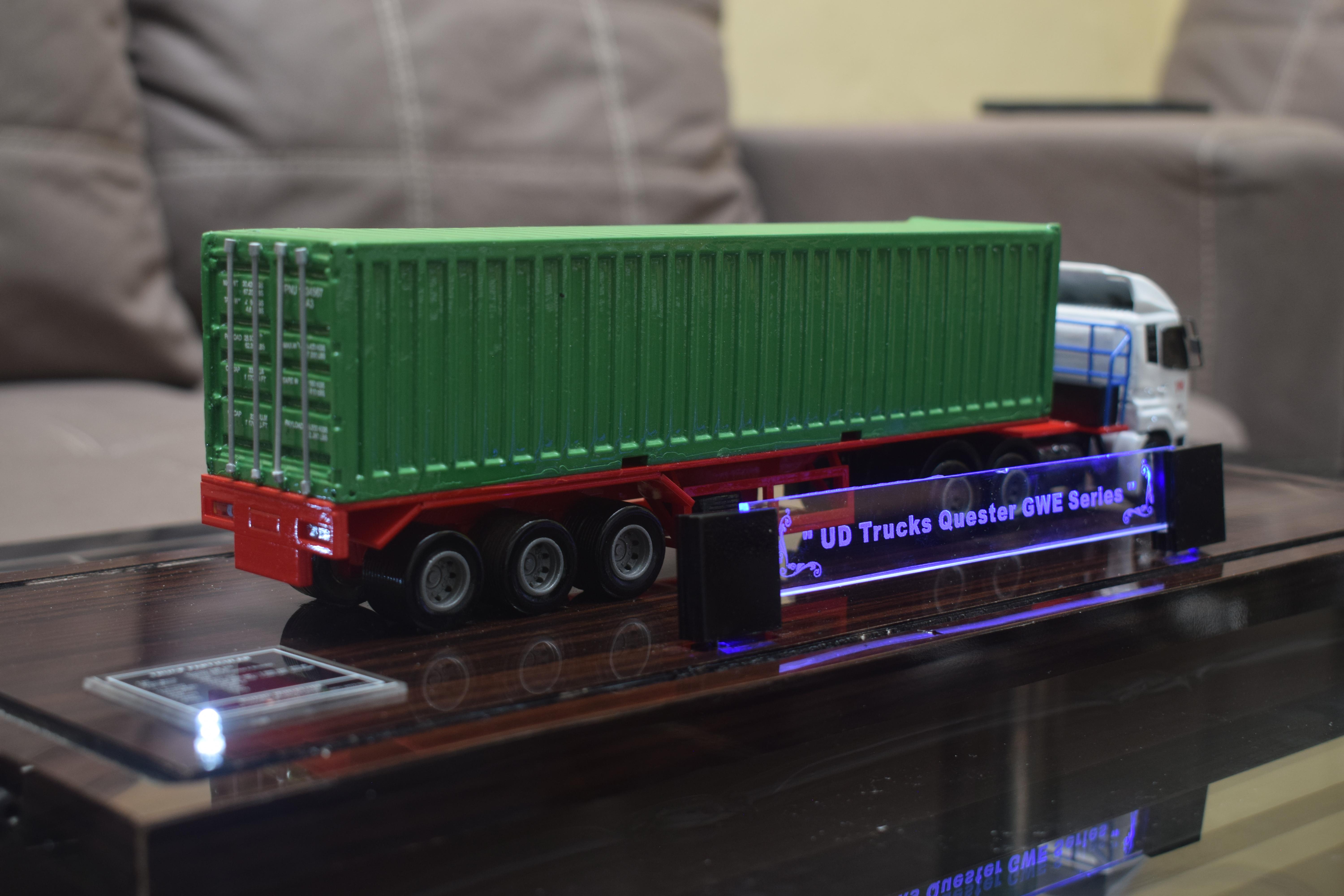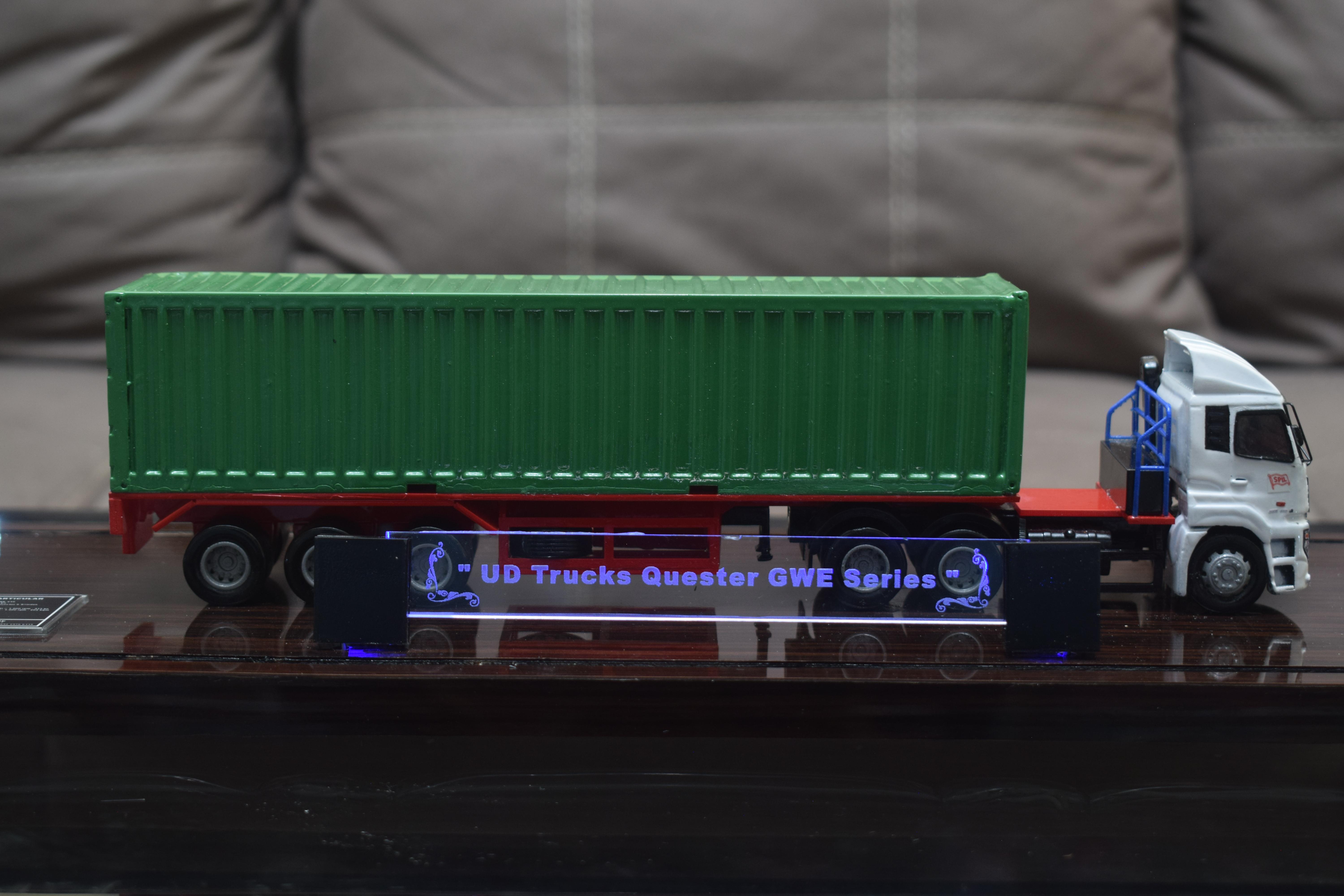 1. Miniatur Truk Kontainer UD ini berbahan dasar fiber, acrylic, resin, artificial part, kayu sebagai tatakan serta dilengkapi pencahayaan dengan lampu led (optional), kemudian kami bingkai dengan etalase kaca (optional).