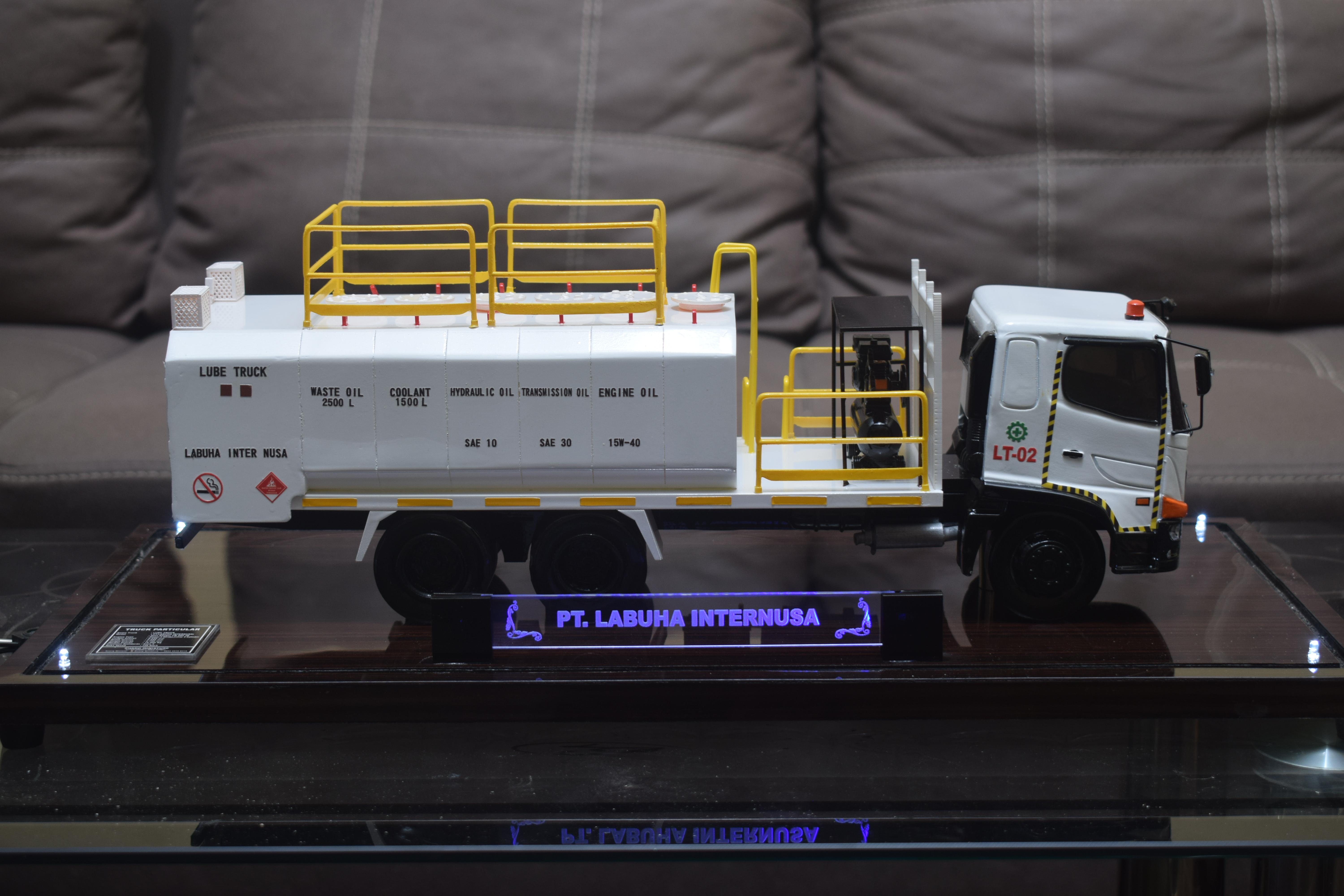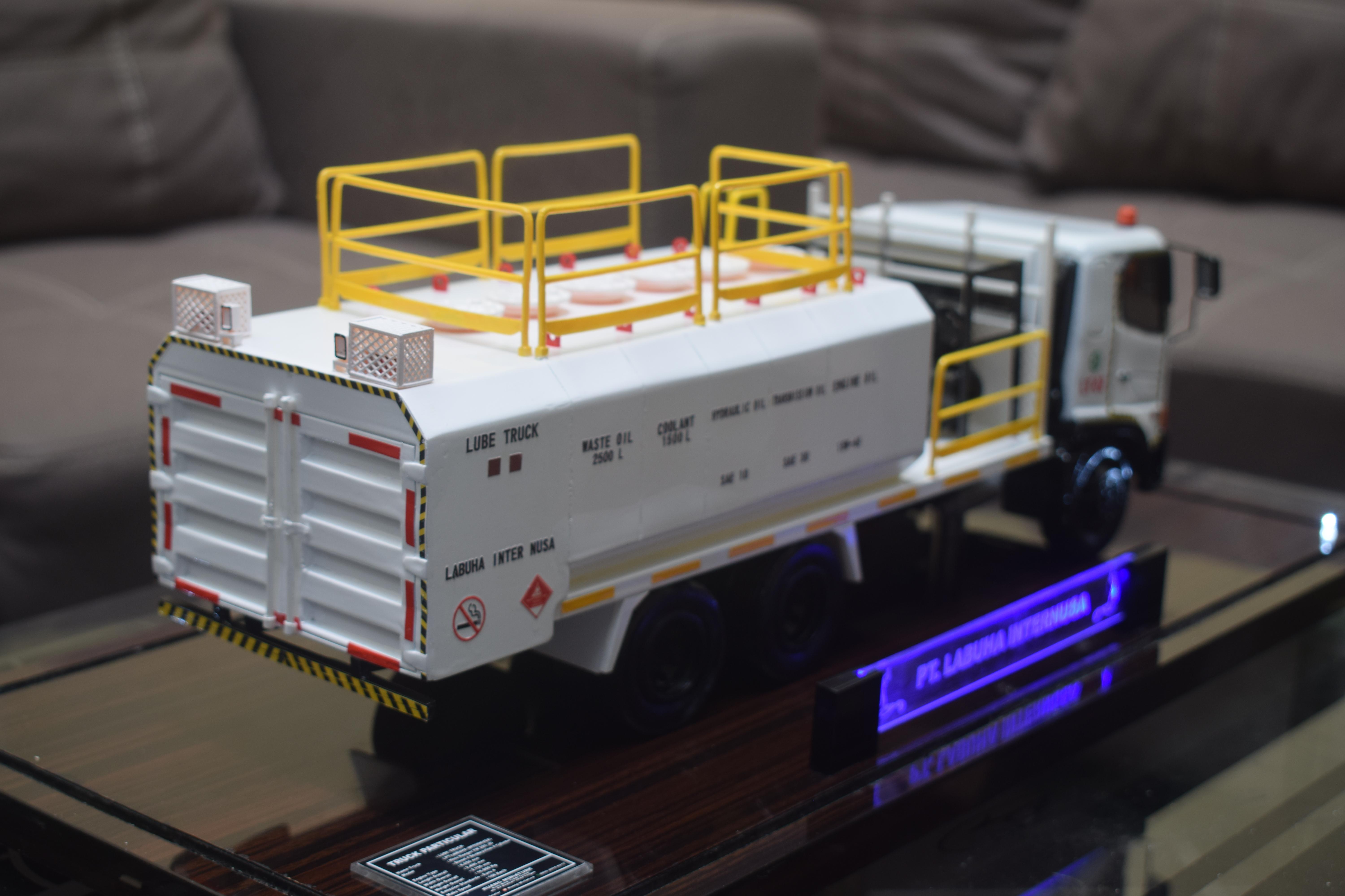 1. Miniatur Truk Tanki Lube Truck ini berbahan dasar fiber, acrylic, resin, artificial part, kayu sebagai tatakan serta dilengkapi pencahayaan dengan lampu led (optional), kemudian kami bingkai dengan etalase kaca (optional).