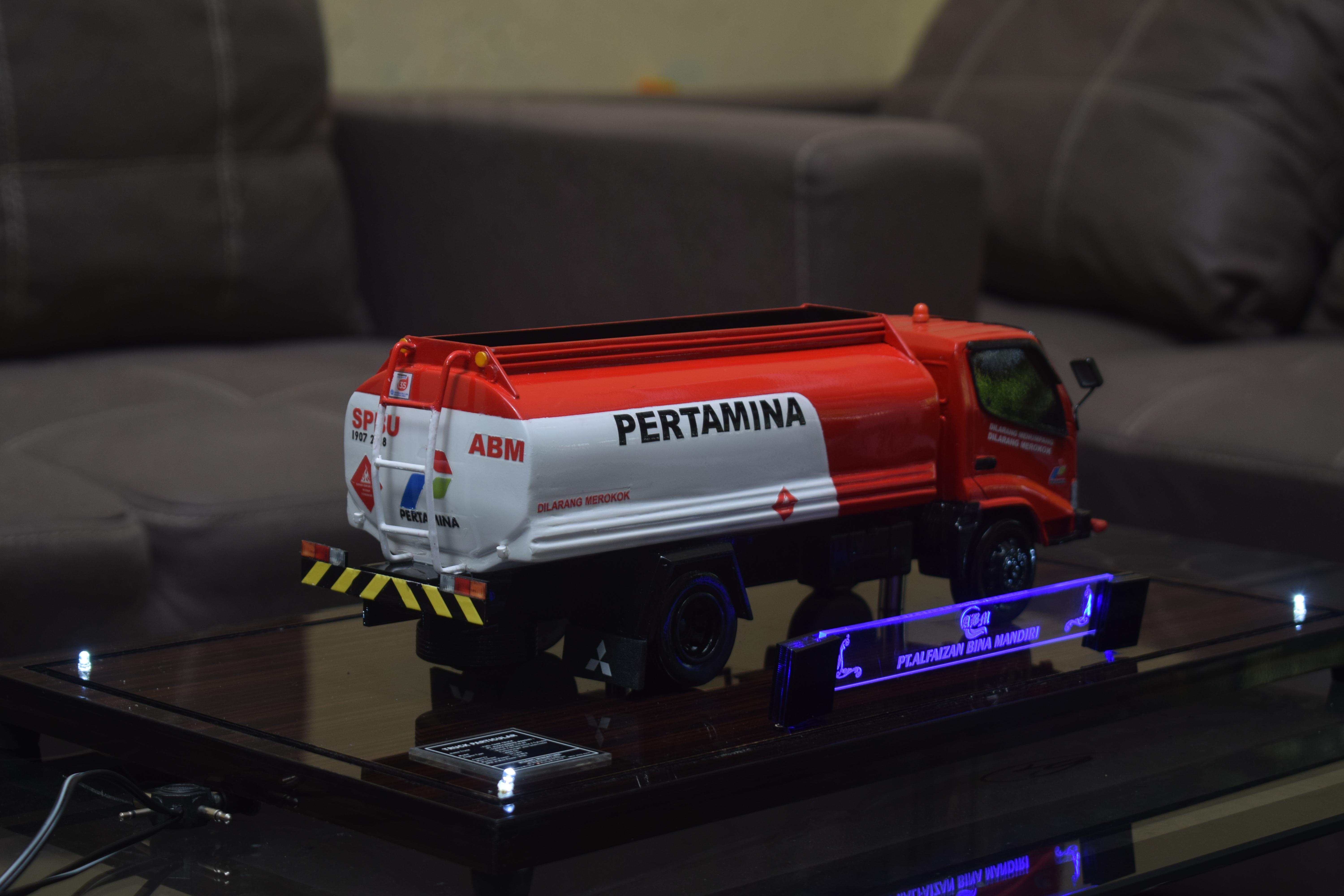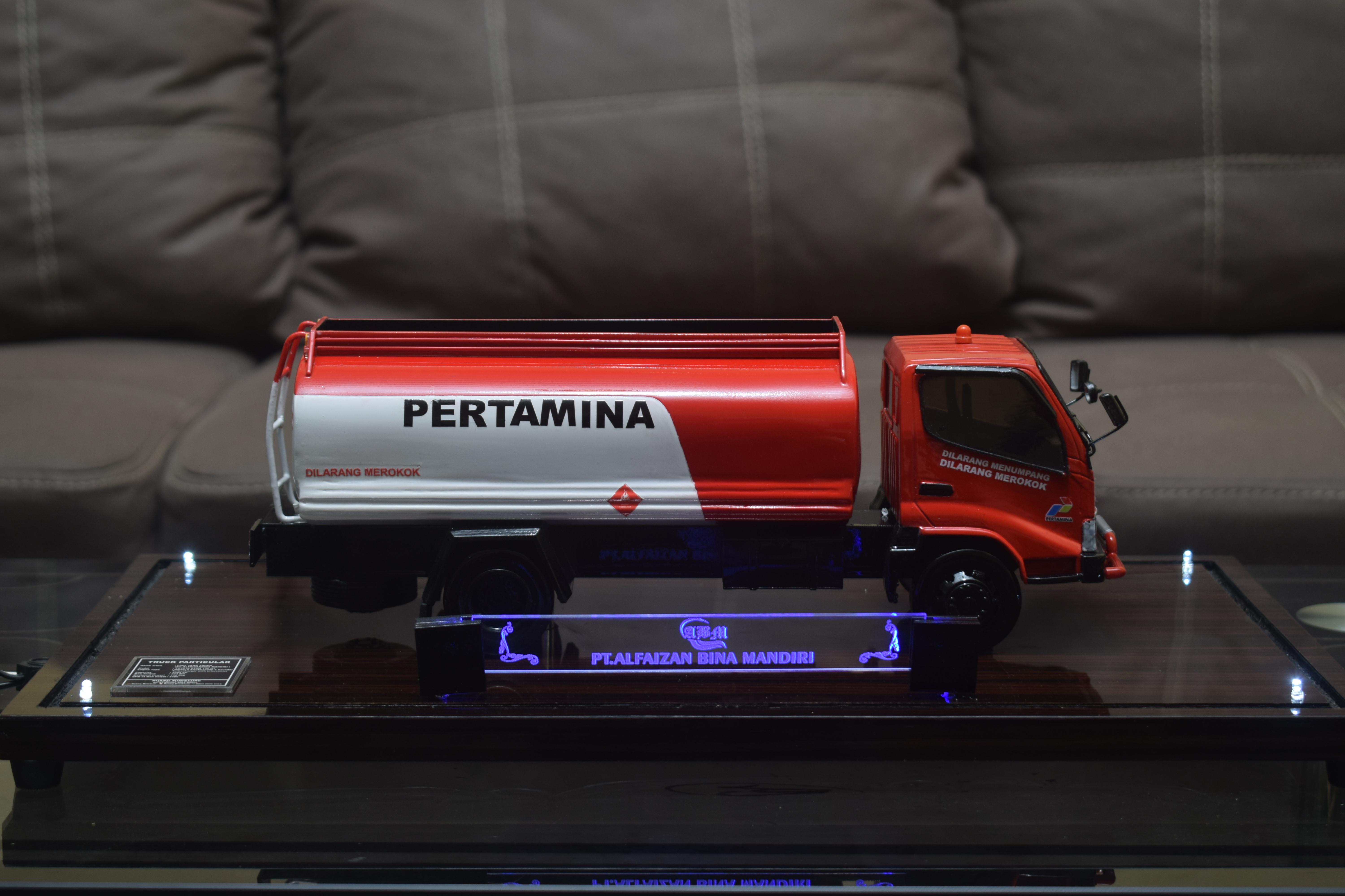 1. Miniatur Truk Tanki Pertamina PT Alfaizhan ini berbahan dasar fiber, acrylic, resin, artificial part, kayu sebagai tatakan serta dilengkapi pencahayaan dengan lampu led (optional), kemudian kami bingkai dengan etalase kaca (optional).