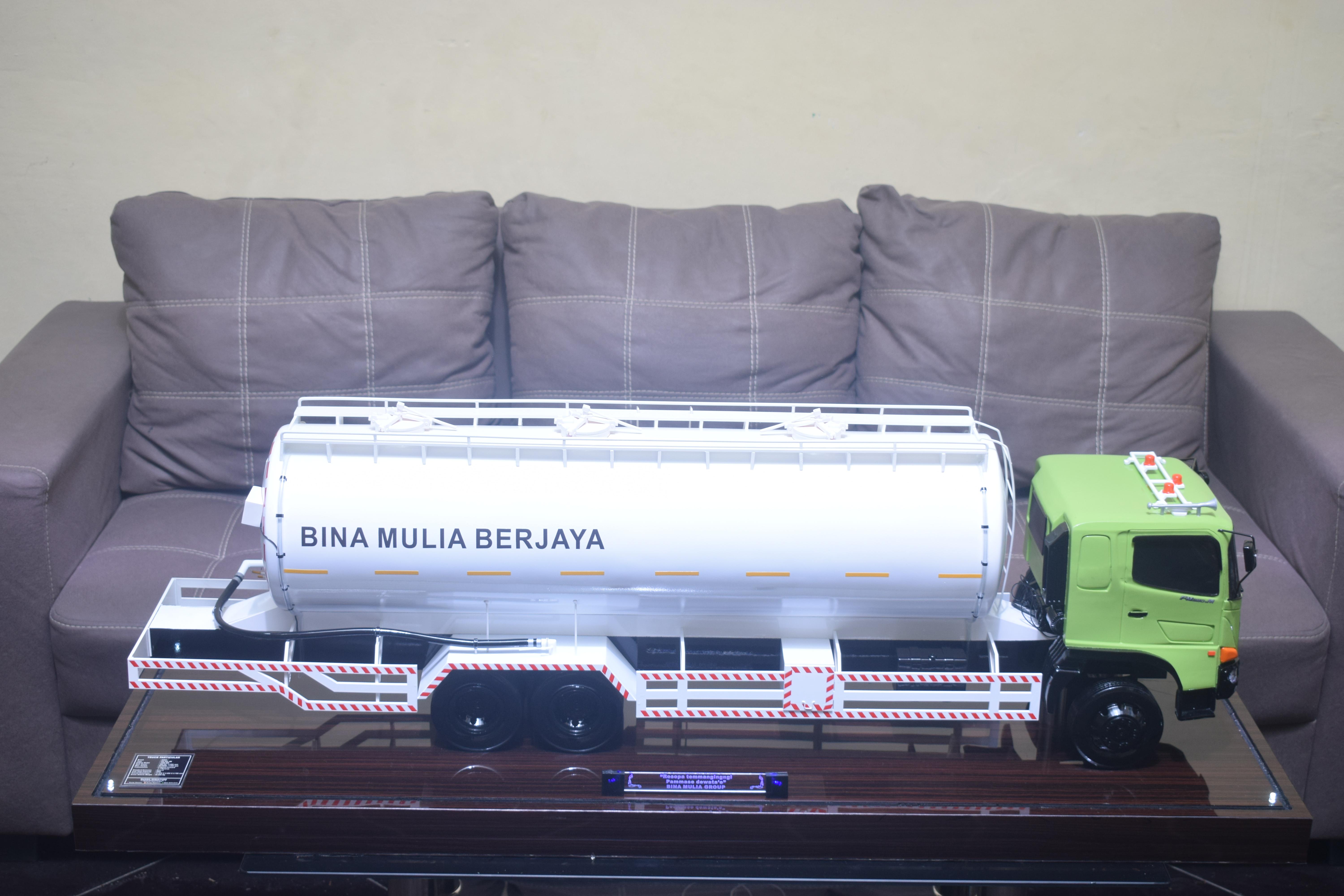 1. Miniatur Truk Tanki Bina Mulia Berjaya ini berbahan dasar fiber, acrylic, resin, artificial part, kayu sebagai tatakan serta dilengkapi pencahayaan dengan lampu led (optional), kemudian kami bingkai dengan etalase kaca (optional).