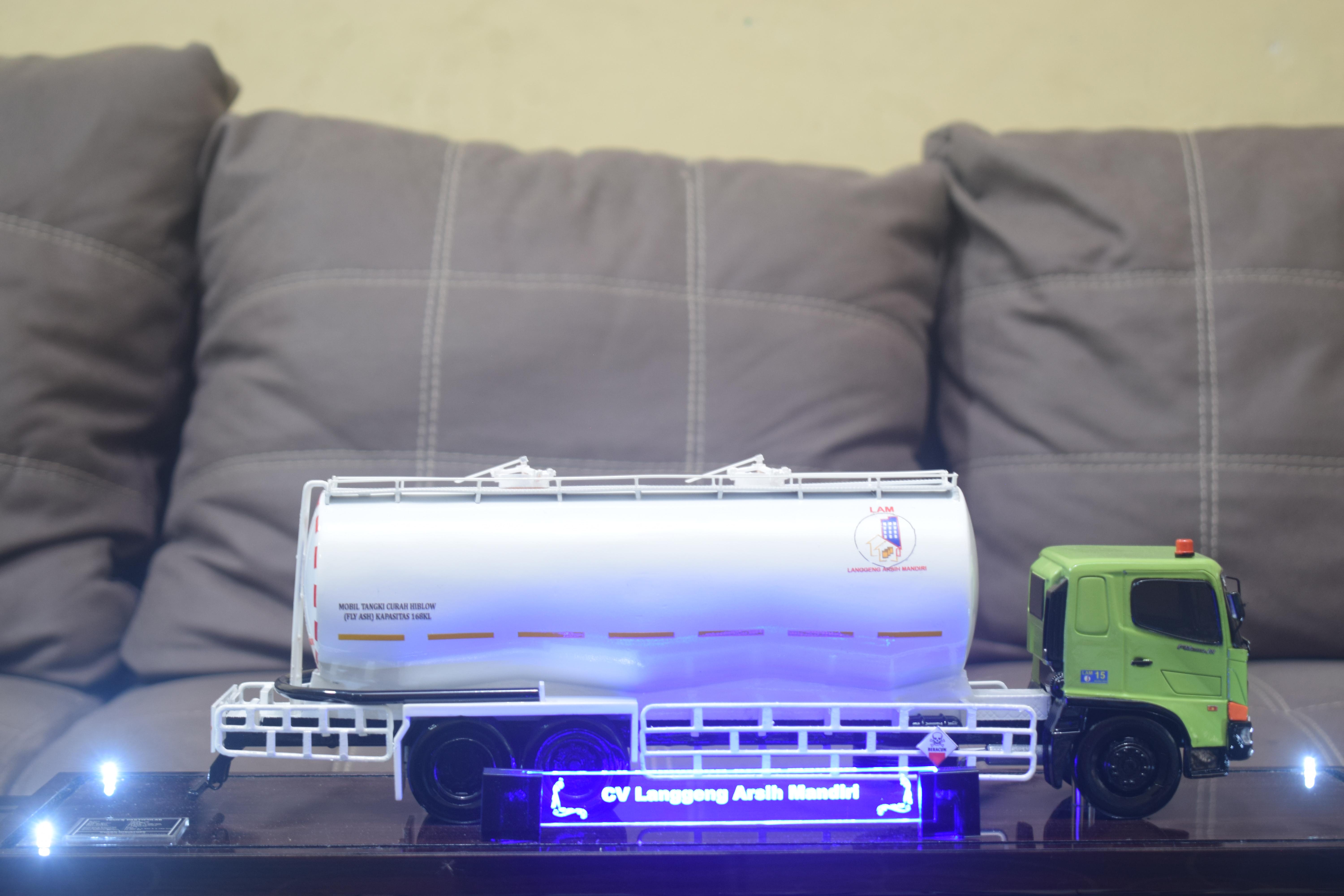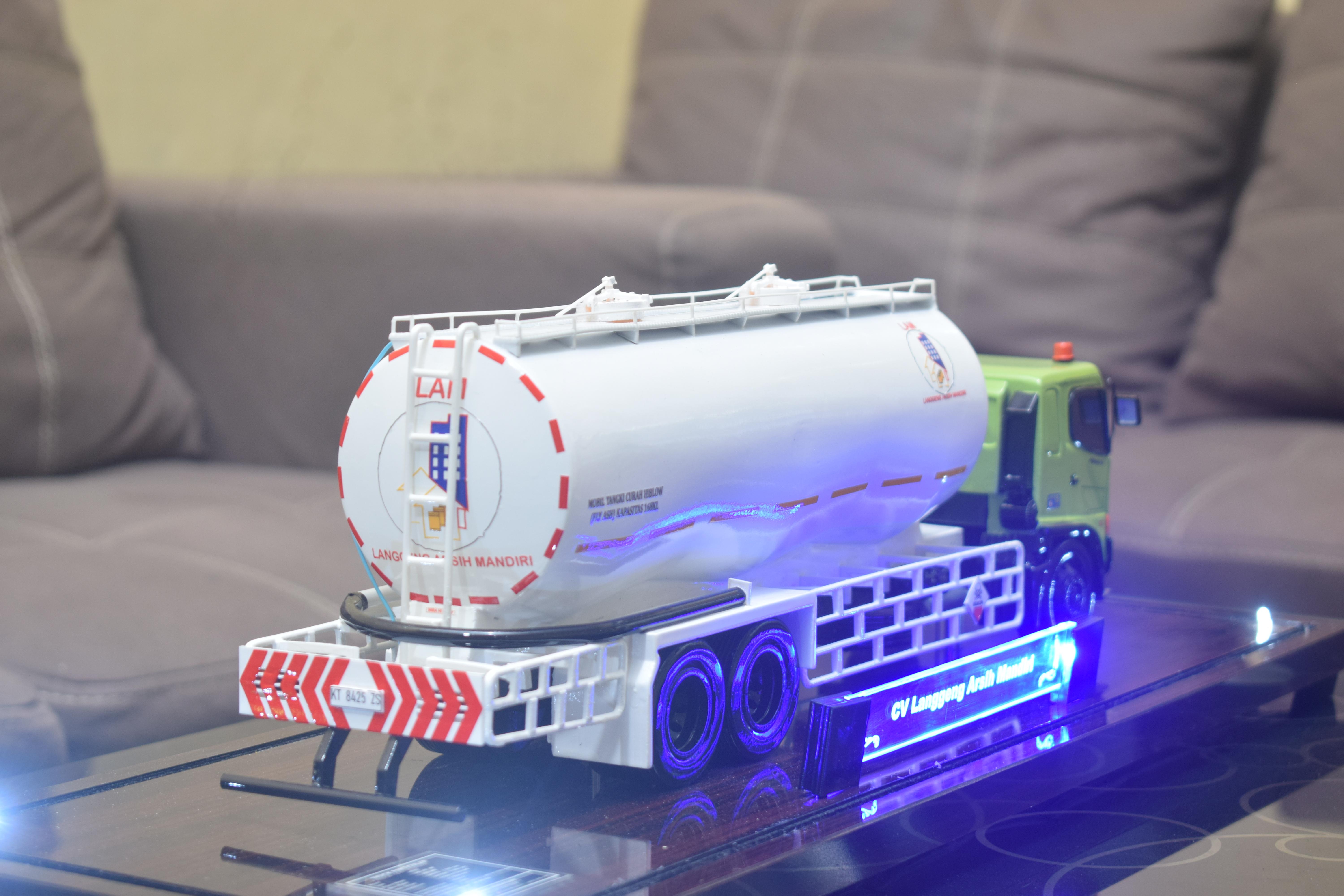 1. Miniatur Truk Tanki CV Langgeng ini berbahan dasar fiber, acrylic, resin, artificial part, kayu sebagai tatakan serta dilengkapi pencahayaan dengan lampu led (optional), kemudian kami bingkai dengan etalase kaca (optional).