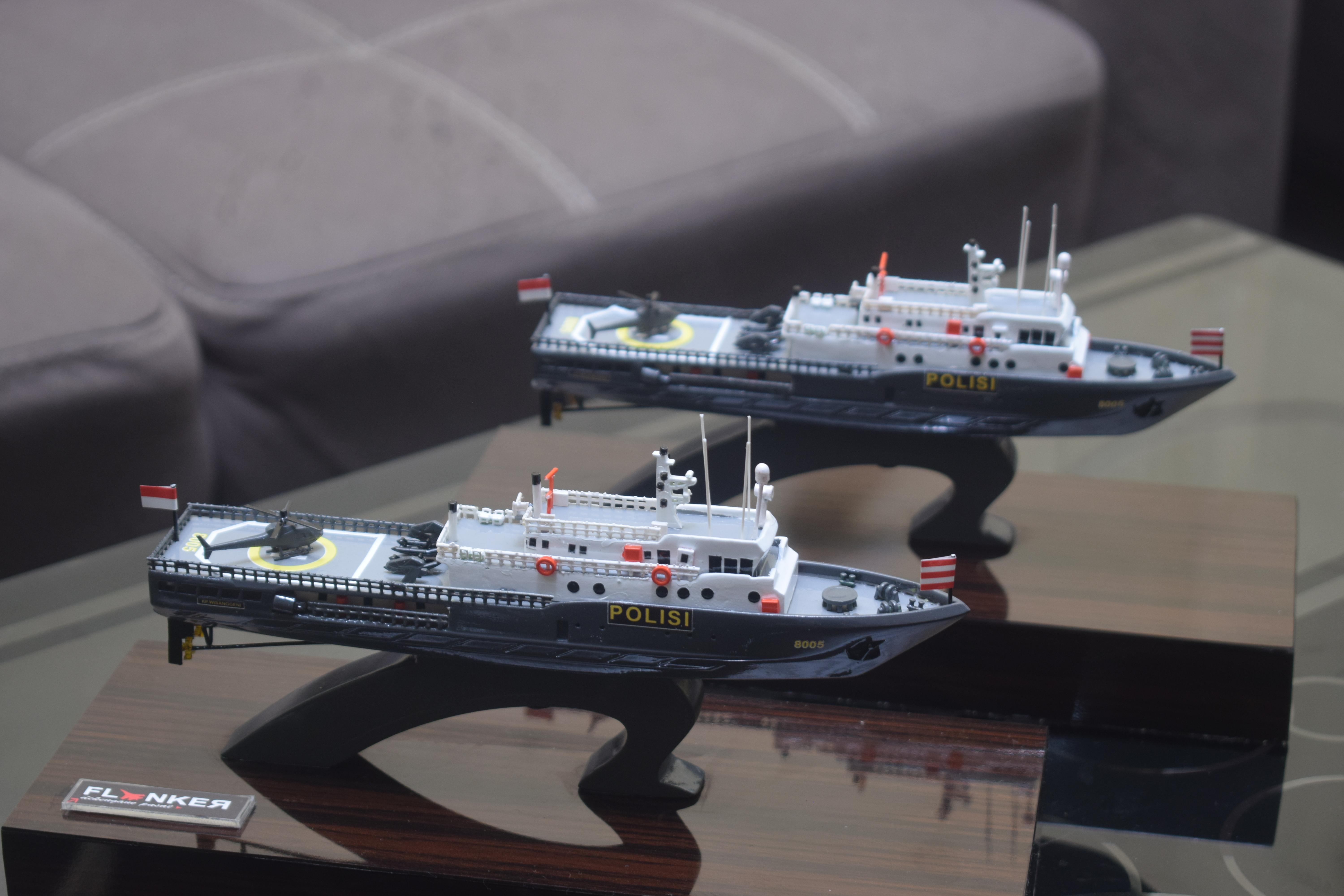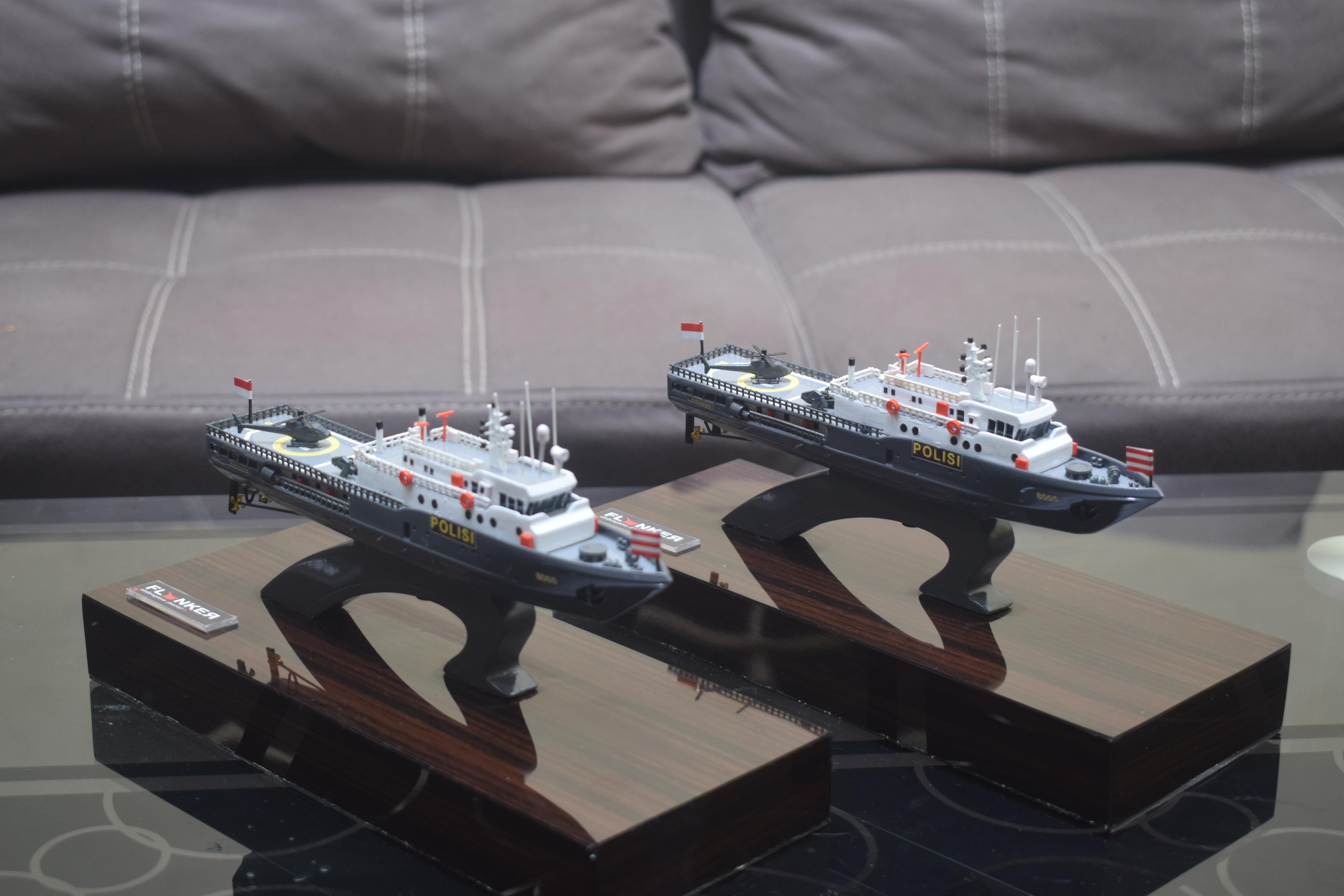 1. Miniatur Kapal Polisi Wisanggeni 8005 ini berbahan dasar fiber, acrylic, resin, artificial part, kayu sebagai tatakan serta dilengkapi bingkai dengan etalase kaca (optional).