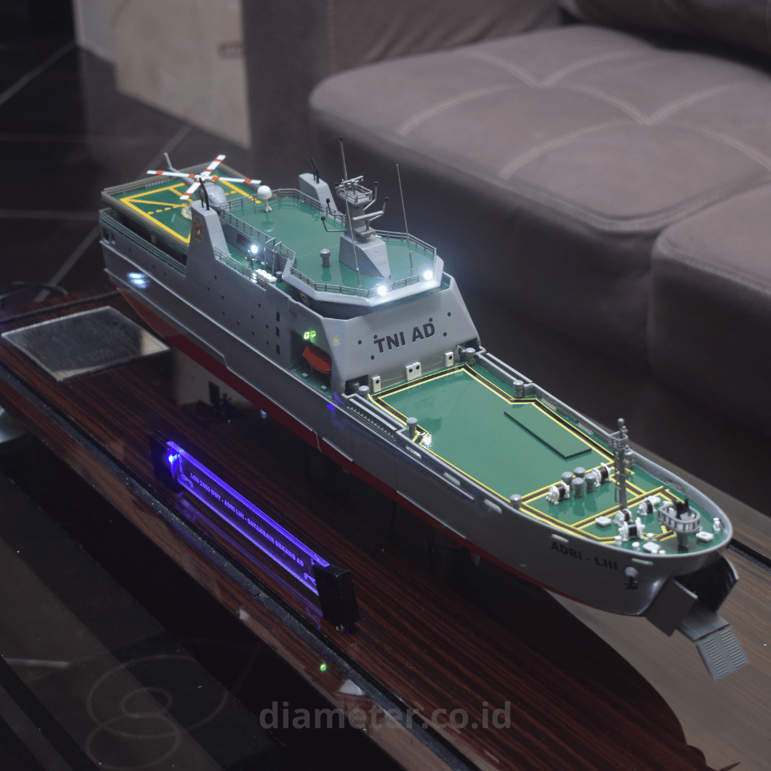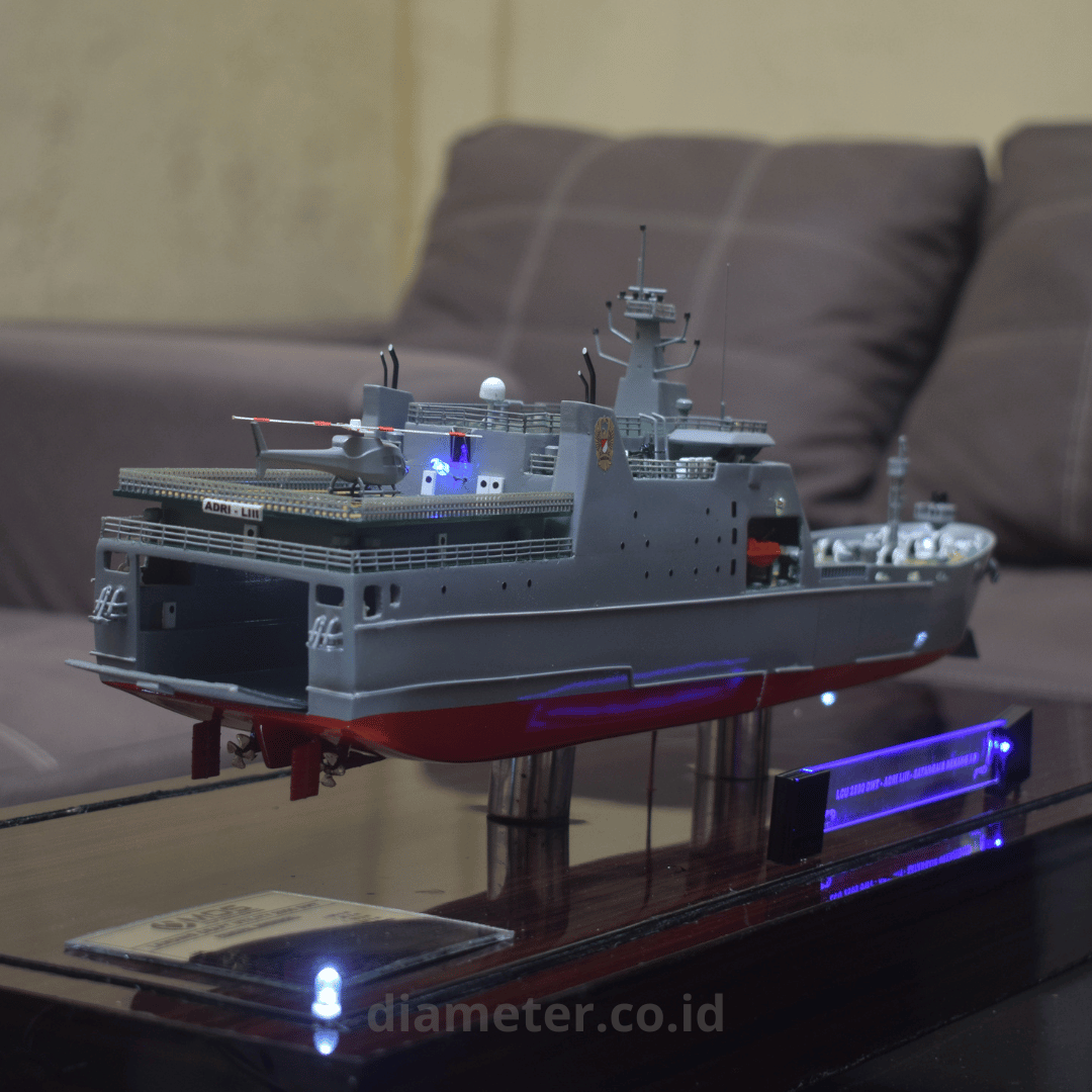 1. Miniatur Kapal LCU ini berbahan dasar fiber, acrylic, resin, artificial part, kayu sebagai tatakan serta dilengkapi pencahayaan dengan lampu led (optional), kemudian kami bingkai dengan etalase kaca (optional).