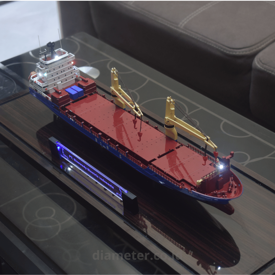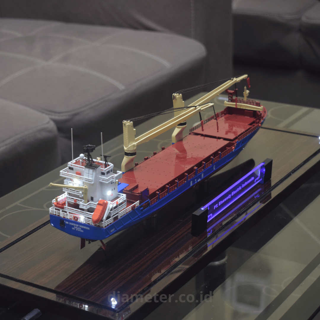 1. Miniatur Kapal Cargo ini berbahan dasar fiber, acrylic, resin, artificial part, kayu sebagai tatakan serta dilengkapi pencahayaan dengan lampu led (optional), kemudian kami bingkai dengan etalase kaca (optional).