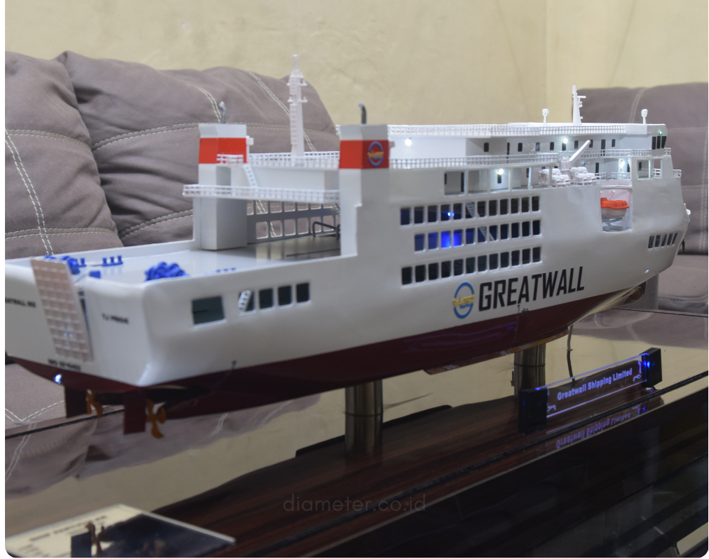 1. Miniatur Kapal ini berbahan dasar fiber, acrylic, resin, artificial part, kayu sebagai tatakan serta dilengkapi pencahayaan dengan lampu led (optional), kemudian kami bingkai dengan etalase kaca (optional).