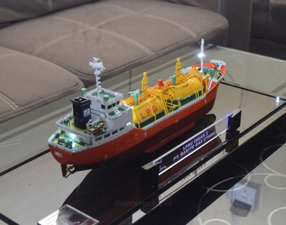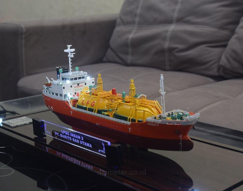 1. Miniatur Kapal LPGC Ihsan ini berbahan dasar fiber, acrylic, resin, artificial part, kayu sebagai tatakan serta dilengkapi pencahayaan dengan lampu led (optional), kemudian kami bingkai dengan etalase kaca (optional).