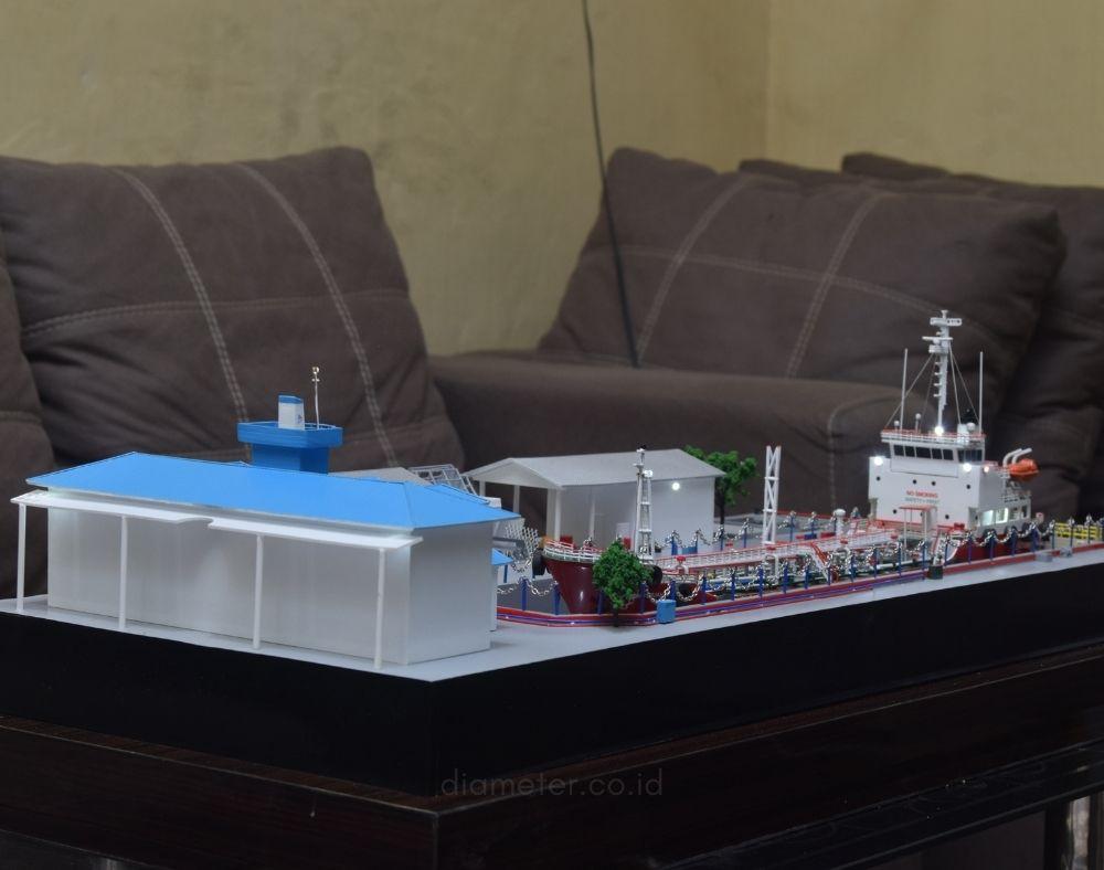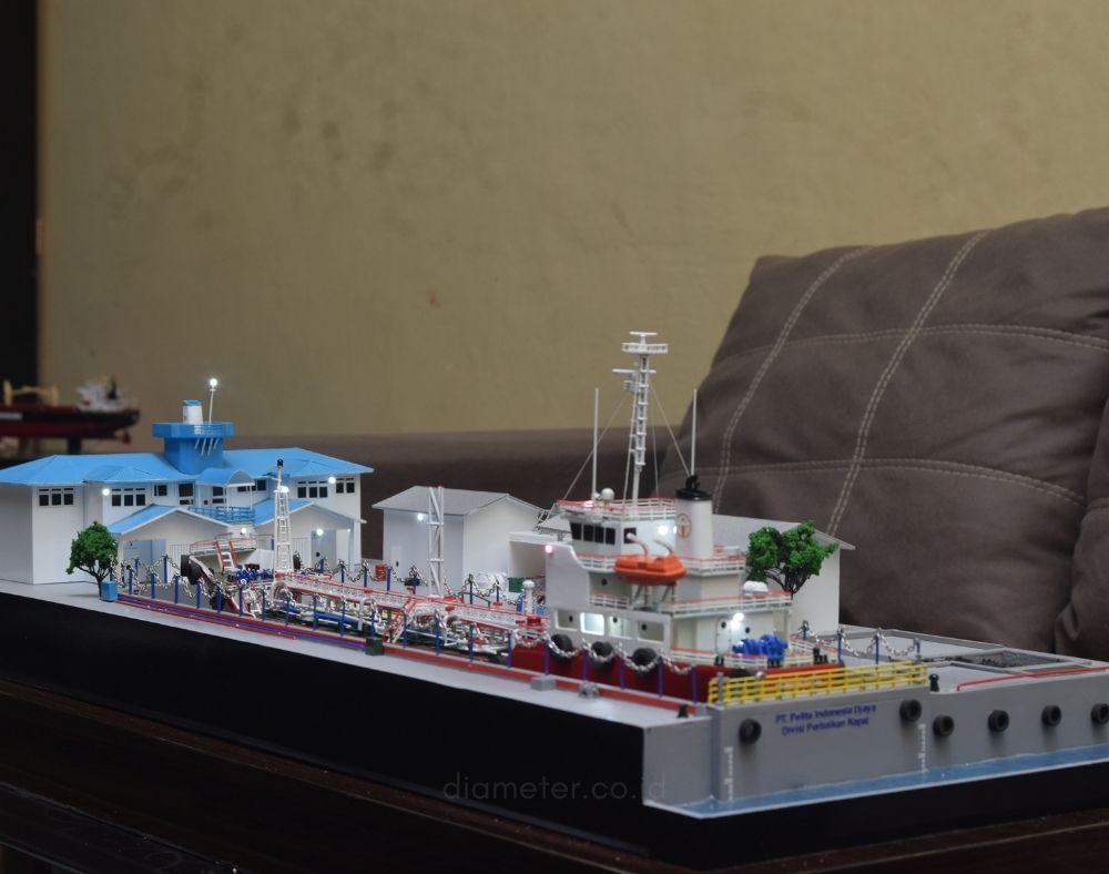 1. Miniatur Kapal SPOB MT Elvira + Pola Dock ini berbahan dasar fiber, acrylic, resin, artificial part, kayu sebagai tatakan serta dilengkapi pencahayaan dengan lampu led (optional), kemudian kami bingkai dengan etalase kaca (optional).
