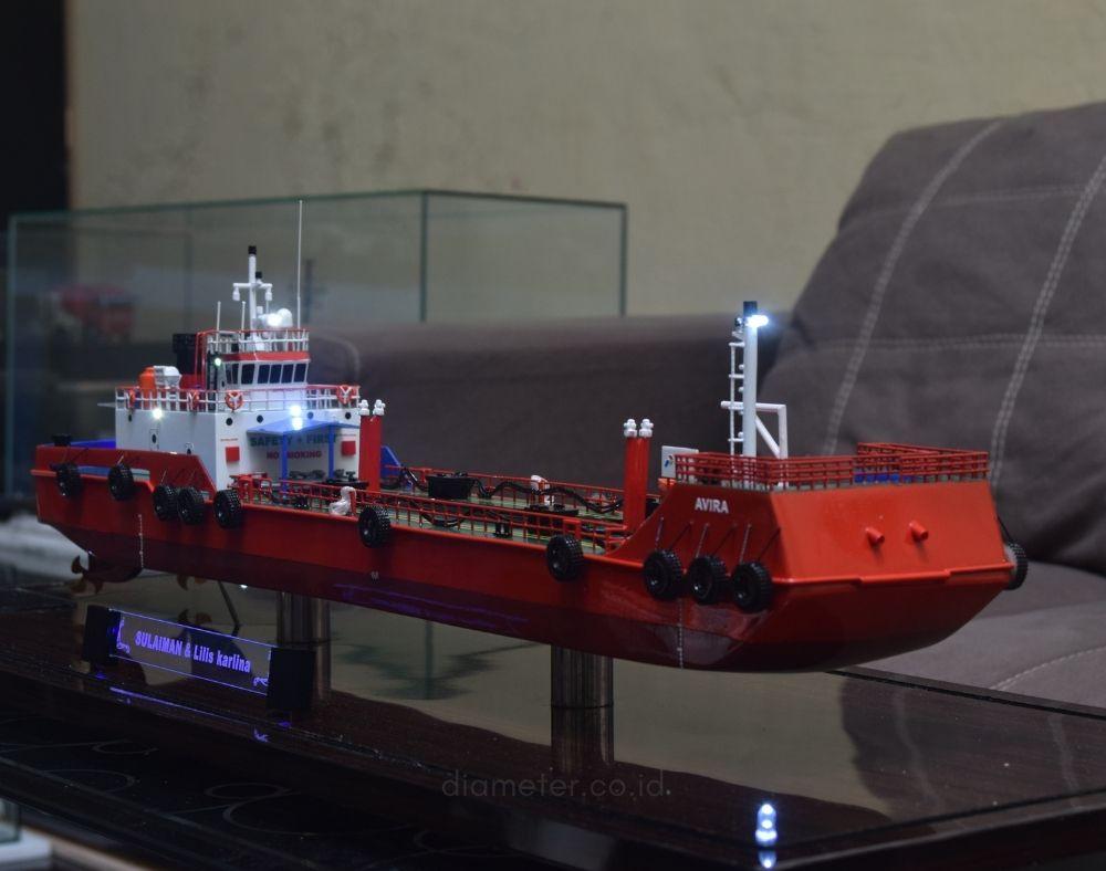 1. Miniatur Kapal SPOB Avira ini berbahan dasar fiber, acrylic, resin, artificial part, kayu sebagai tatakan serta dilengkapi pencahayaan dengan lampu led (optional), kemudian kami bingkai dengan etalase kaca (optional).
