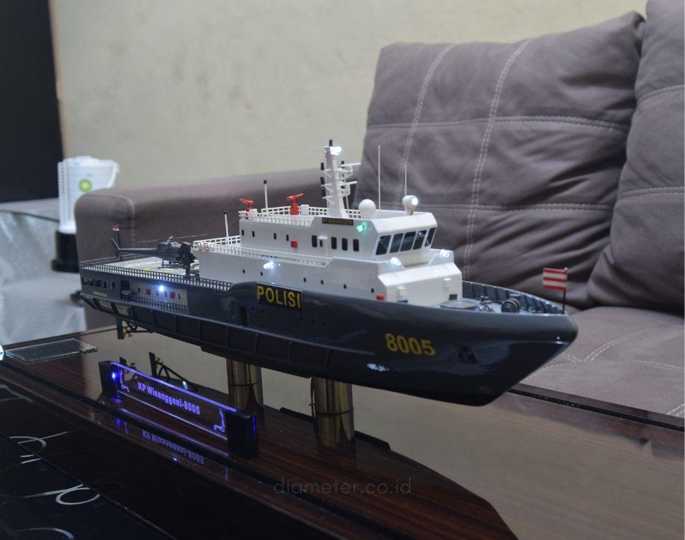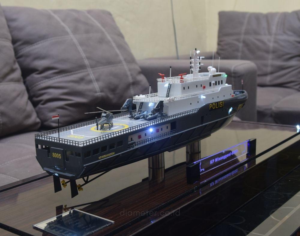 1. Miniatur Kapal Wisanggeni ini berbahan dasar fiber, acrylic, resin, artificial part, kayu sebagai tatakan serta dilengkapi pencahayaan dengan lampu led (optional), kemudian kami bingkai dengan etalase kaca (optional).