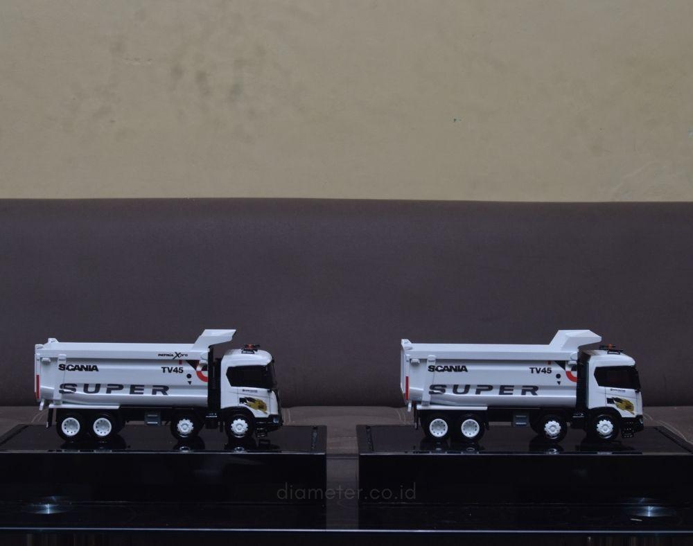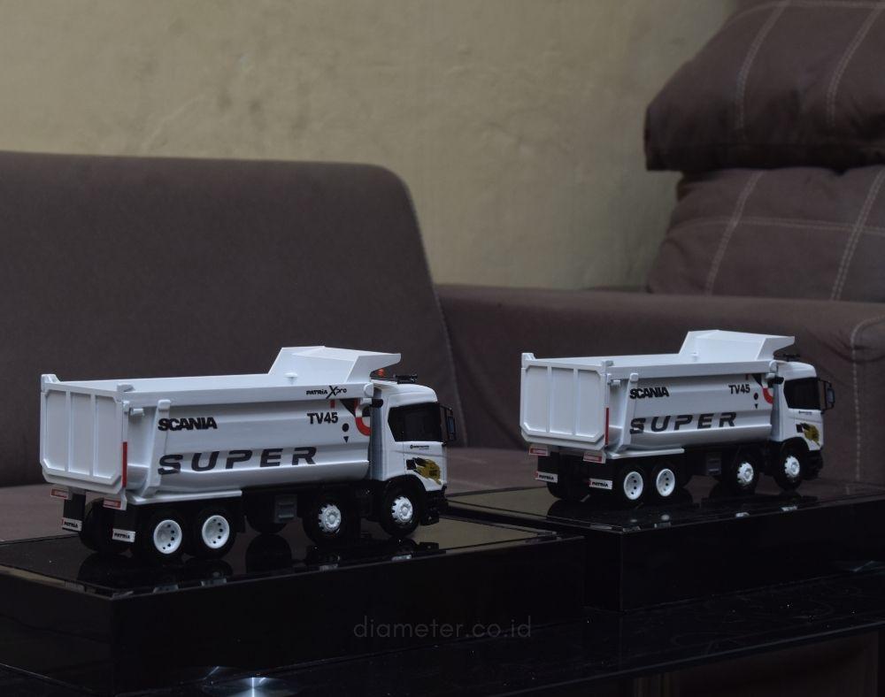 1. Miniatur Truk Scania G460-B8X4 ini berbahan dasar fiber, acrylic, resin, artificial part, kayu sebagai tatakan serta dilengkapi pencahayaan dengan lampu led (optional), kemudian kami bingkai dengan etalase kaca (optional).