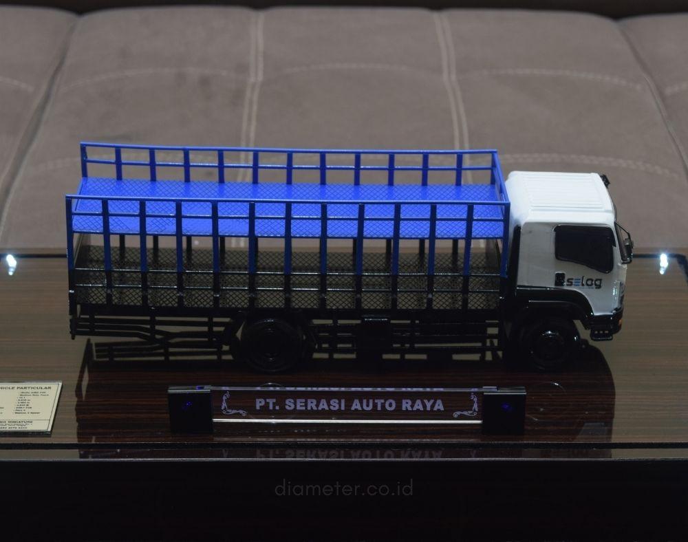 1. Miniatur Truk Trailer Isuzu ini berbahan dasar fiber, acrylic, resin, artificial part, kayu sebagai tatakan serta dilengkapi pencahayaan dengan lampu led (optional), kemudian kami bingkai dengan etalase kaca (optional).