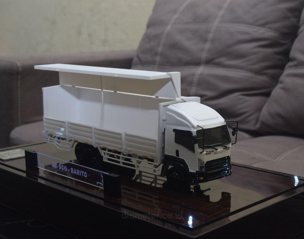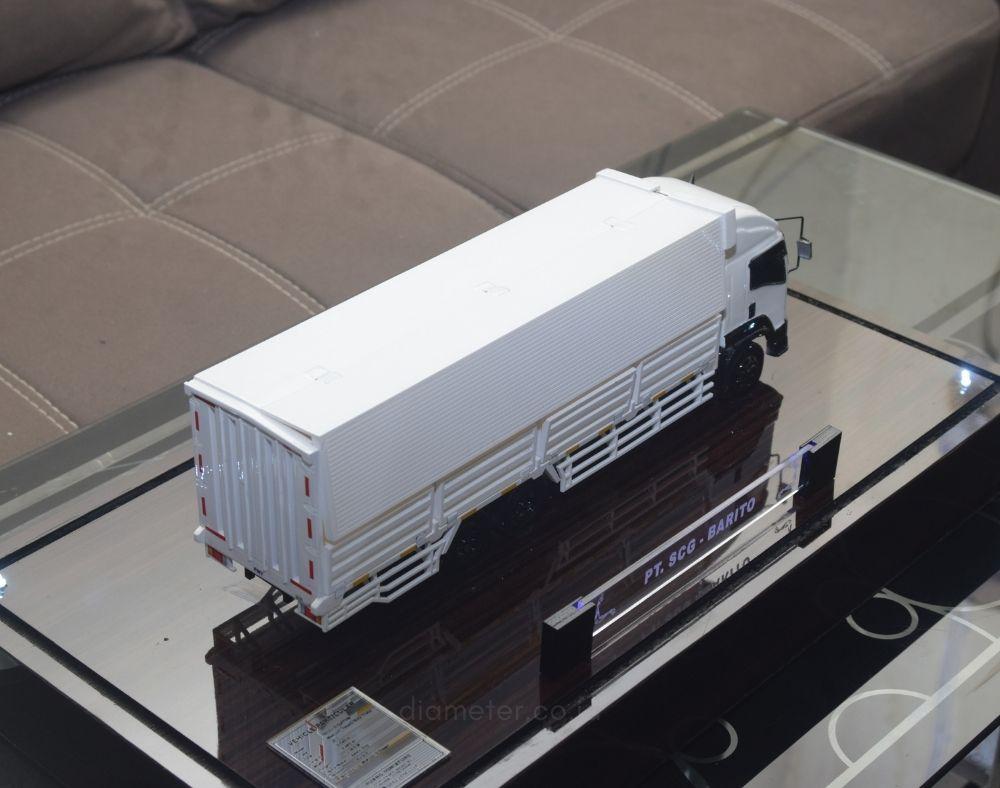1. Miniatur Truk Wingsbox Buka Tutup Manual ini berbahan dasar fiber, acrylic, resin, artificial part, kayu sebagai tatakan serta dilengkapi pencahayaan dengan lampu led (optional), kemudian kami bingkai dengan etalase kaca (optional).