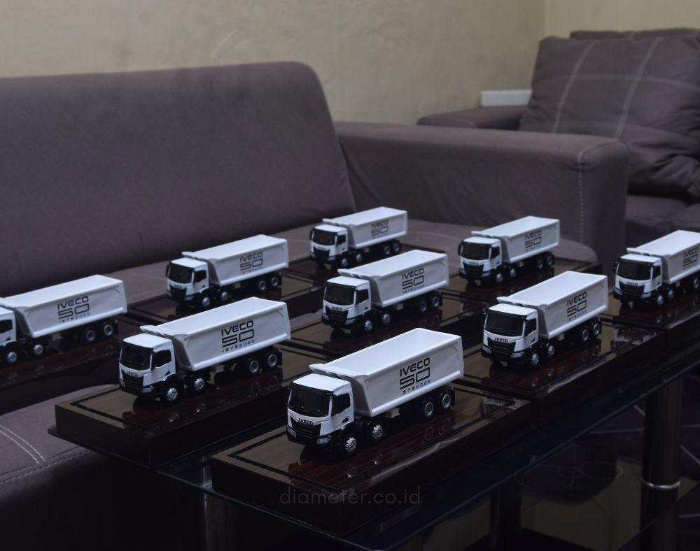 1. Miniatur Truk IVECO ini berbahan dasar fiber, acrylic, resin, artificial part, kayu sebagai tatakan serta dilengkapi pencahayaan dengan lampu led (optional), kemudian kami bingkai dengan etalase kaca (optional).