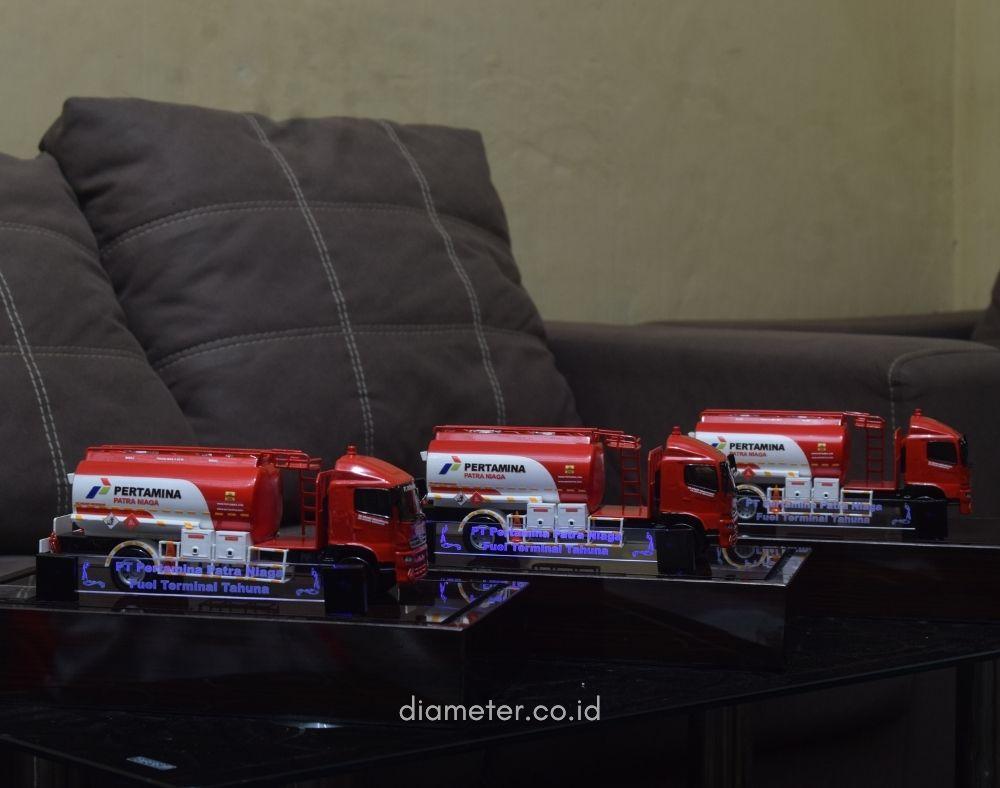 1. Miniatur Truk Tanki Pertamina Patra Niaga ini berbahan dasar fiber, acrylic, resin, artificial part, kayu sebagai tatakan serta dilengkapi pencahayaan dengan lampu led ( optional ), kemudian kami bingkai dengan etalase kaca ( optional ).