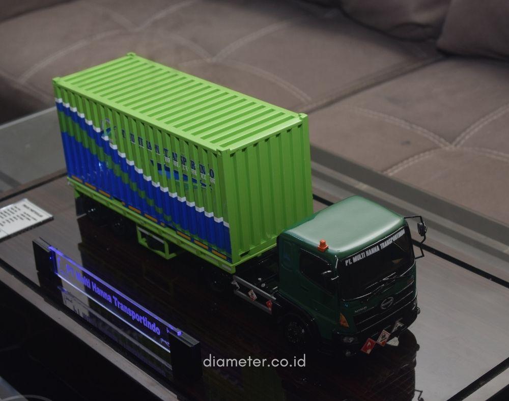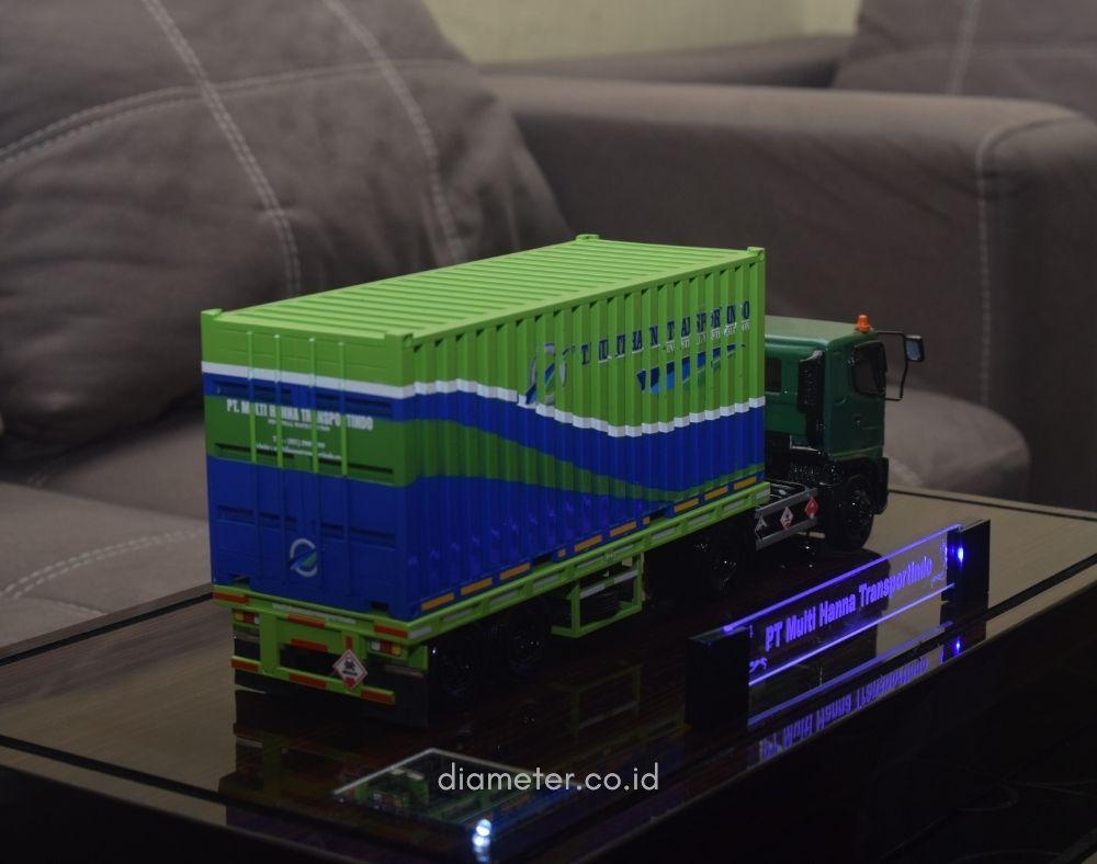 1. Miniatur Truk Trailer + Muatan ini berbahan dasar fiber, acrylic, resin, artificial part, kayu sebagai tatakan serta dilengkapi pencahayaan dengan lampu led ( optional ), kemudian kami bingkai dengan etalase kaca ( optional ).