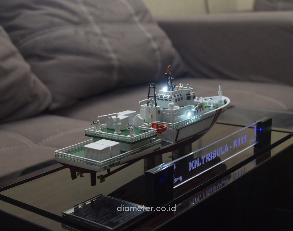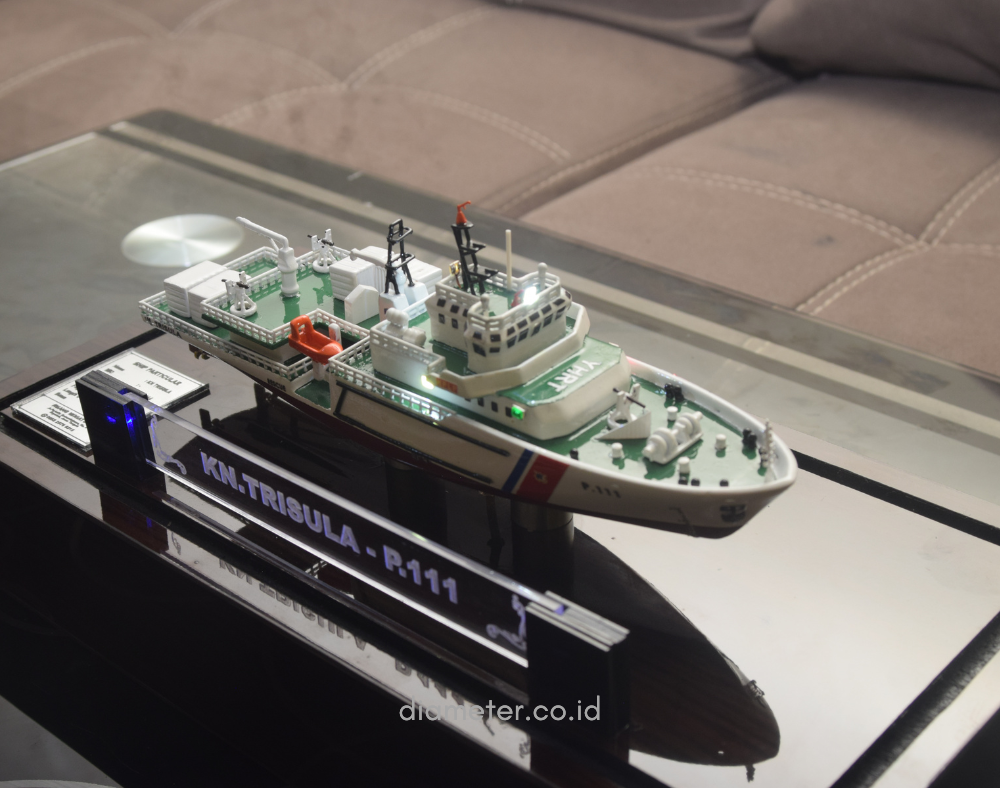 1. Miniatur Kapal KPLP P.111 ini berbahan dasar fiber, acrylic, resin, artificial part, kayu sebagai tatakan serta dilengkapi pencahayaan dengan lampu led ( optional ), kemudian kami bingkai dengan etalase kaca ( optional ).