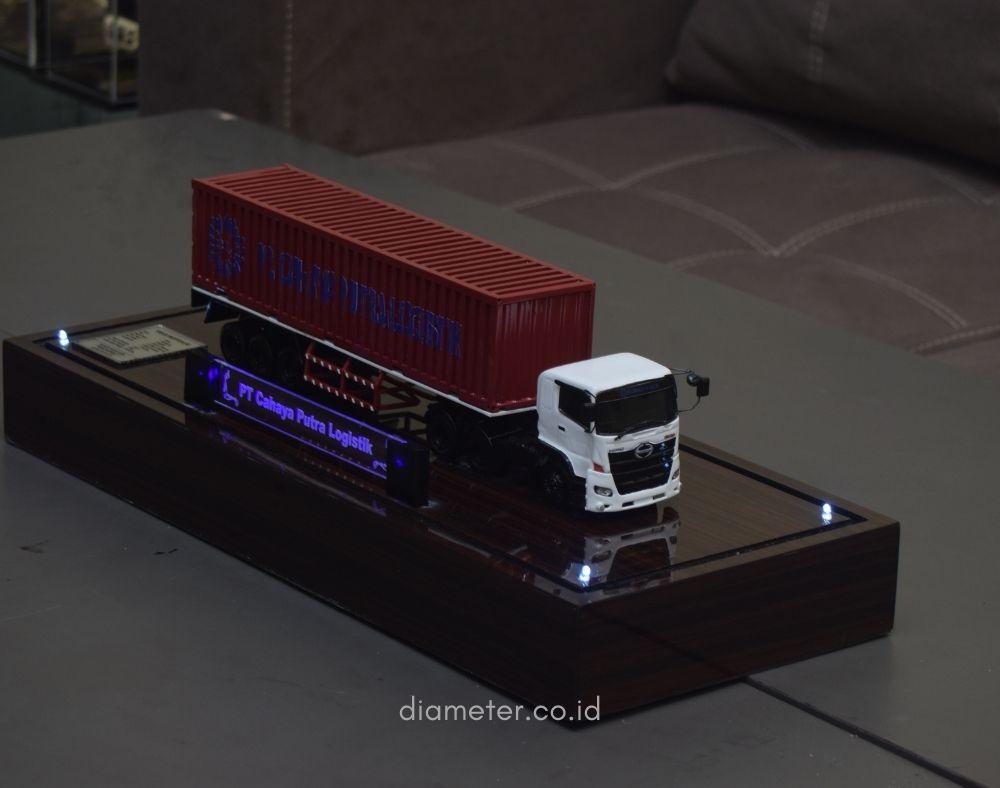 1. Miniatur Truk Kontainer ini berbahan dasar fiber, acrylic, resin, artificial part, kayu sebagai tatakan serta dilengkapi pencahayaan dengan lampu led (optional), kemudian kami bingkai dengan etalase kaca (optional).